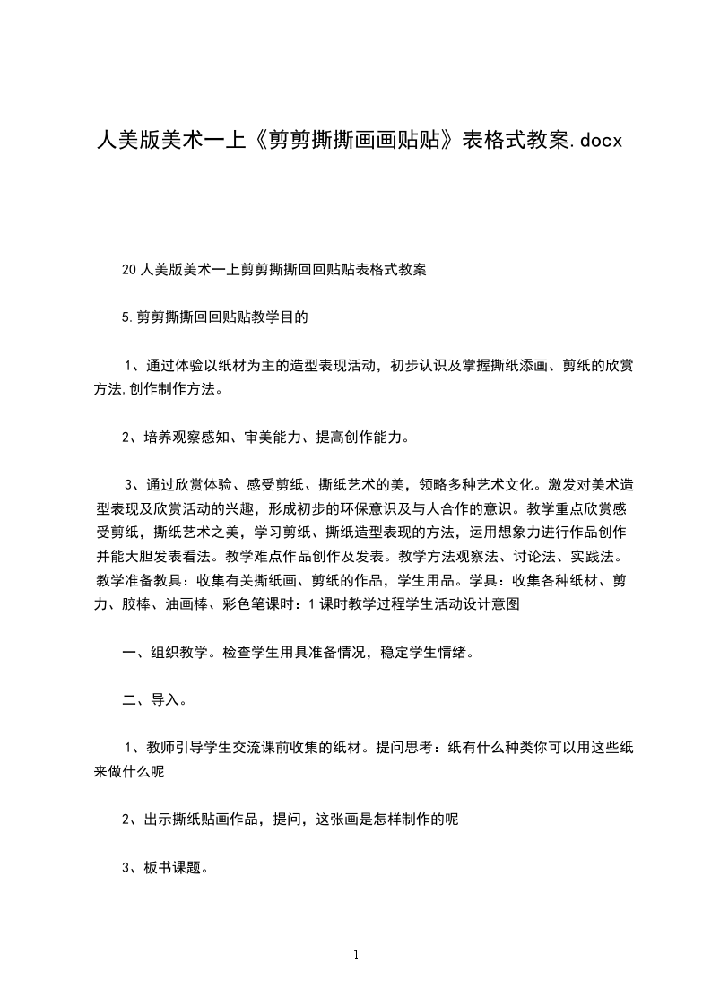20人美版美术一上剪剪撕撕回回贴贴表格式教案