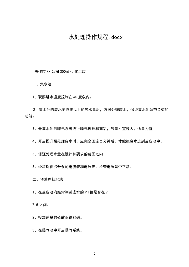 5、保证处理水量在设计和要求的范围之内。