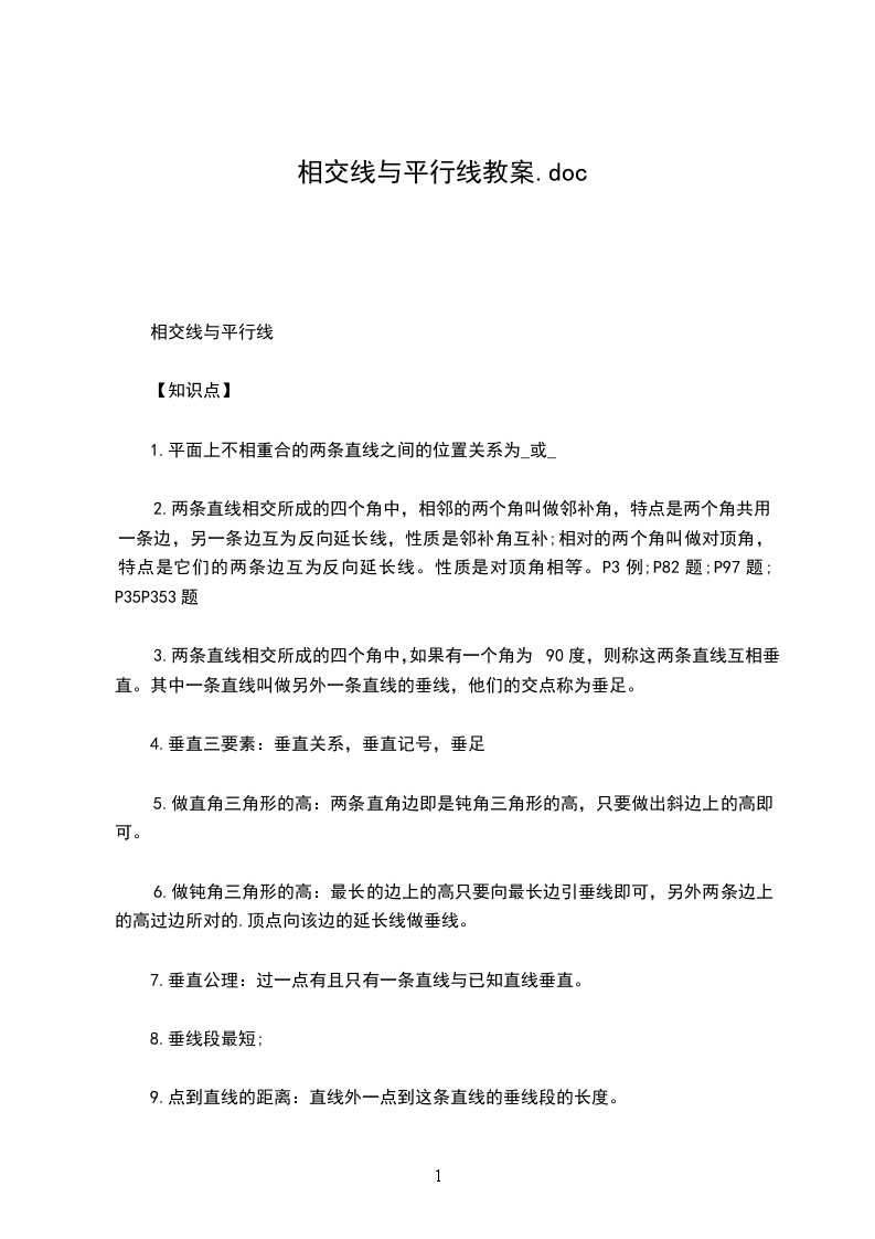 1、三线八角的位置关系以及它们的基本特征(图形)