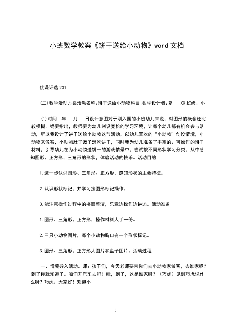 3、师:小动物们见了这些饼干很高兴,都说自己喜欢吃其中的一种图形饼干,它们到底喜欢吃哪一种呢那就要请你们看一看,想一想。我已经为你们每人都准备了一盘饼干,现在请你们看看盘子里都有哪些图形的饼干,想一想该送给哪只小动物好,小朋友我们一起给小动物送饼干吧,送到小动物的盘子里。