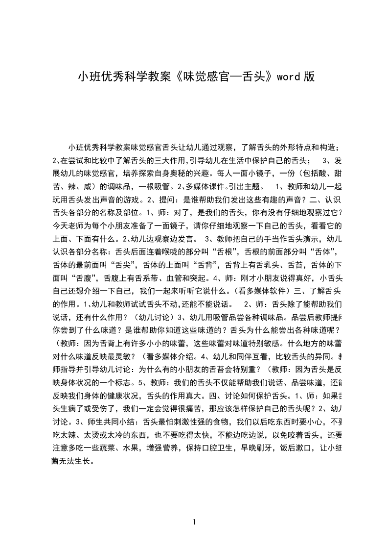 2、在尝试和比较中了解舌头的三大作用,引导幼儿在生活中保护自己的舌头。