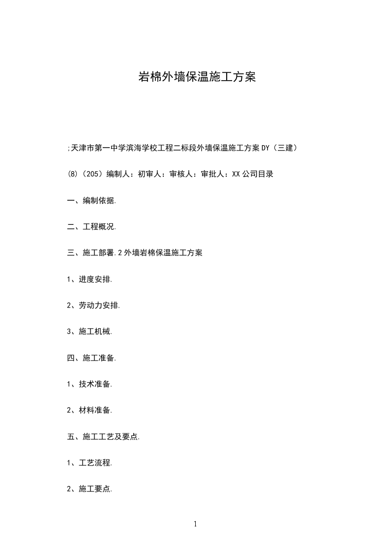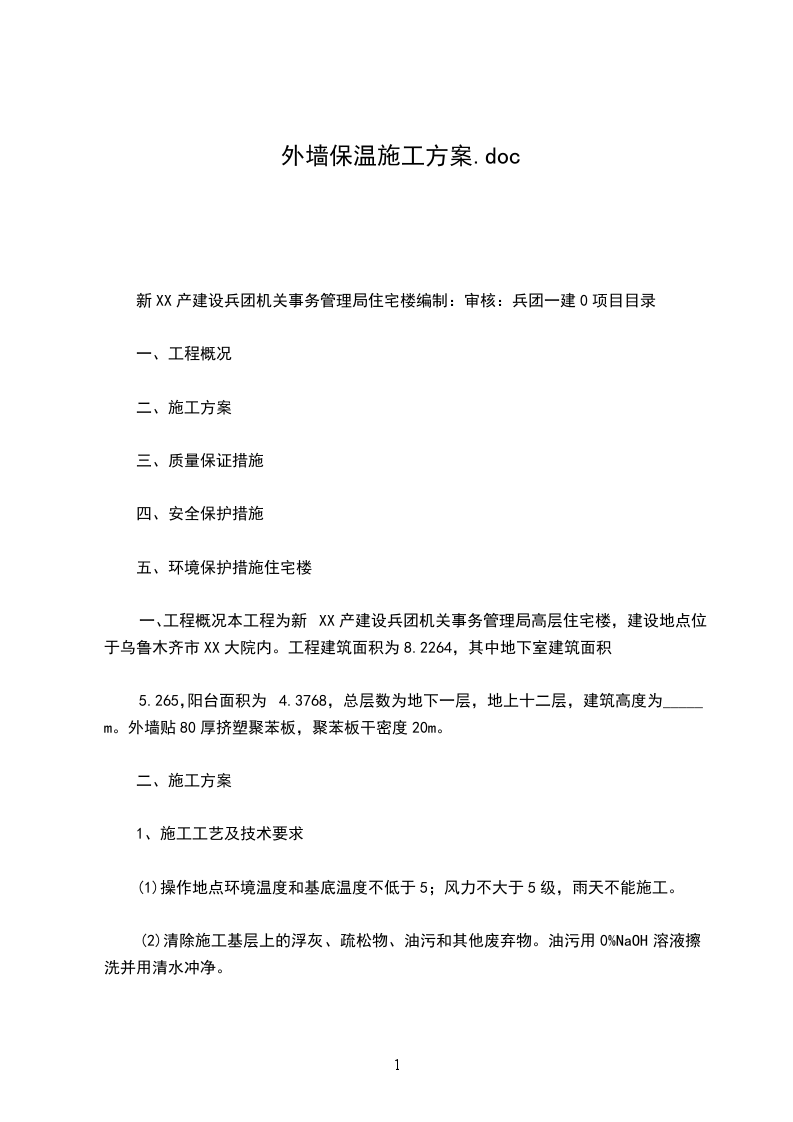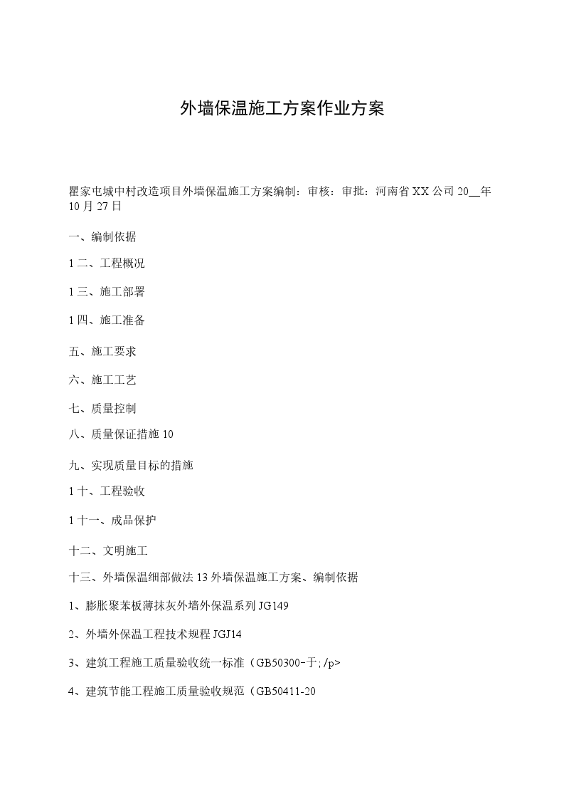 外墙保温施工方案编制单位:编制:编制时间:目录中XX公司