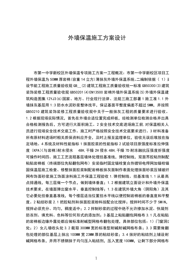 1、编制说明:本工程施工方案根据无机保温厂家提供的相关技术资料,建筑保温节能施工图纸及国家现行施工验收规范,重庆市地方标准,针对本工程的结构形式,施工工艺、材料性能及施工要求进行编制。