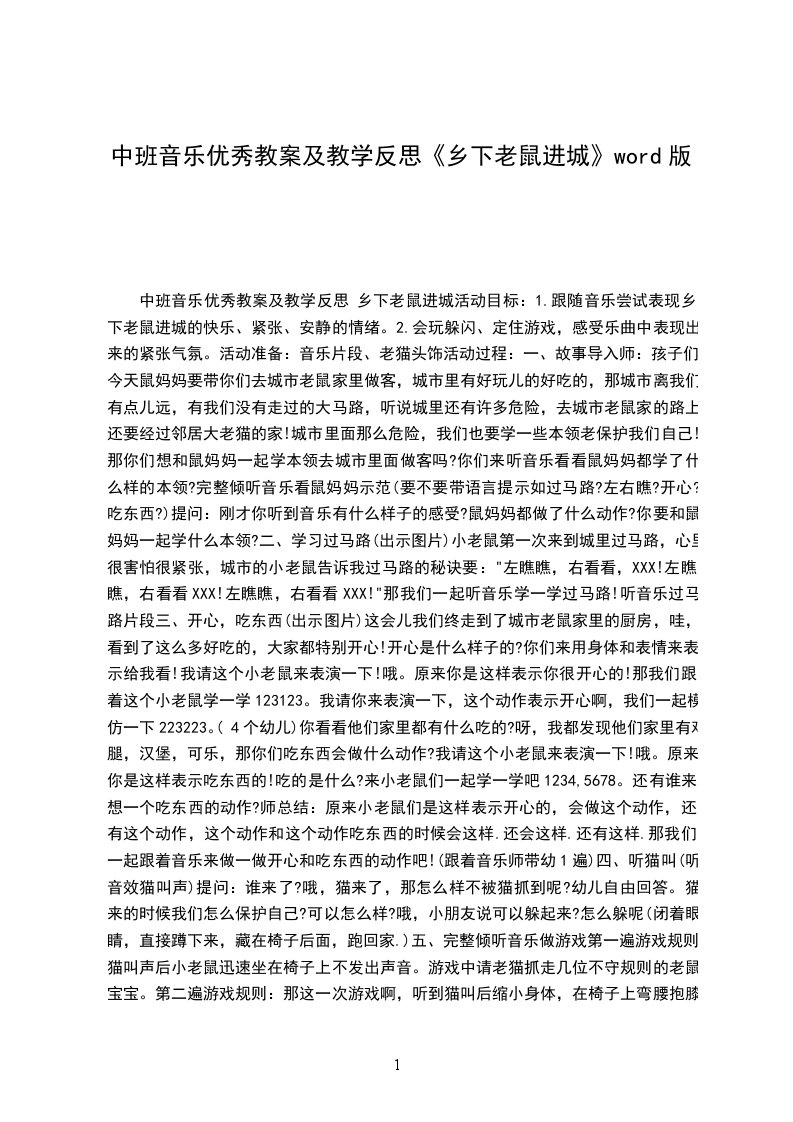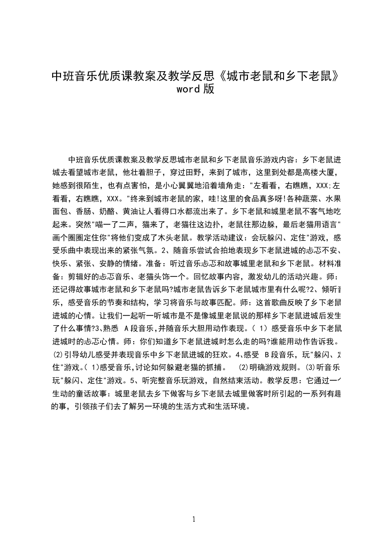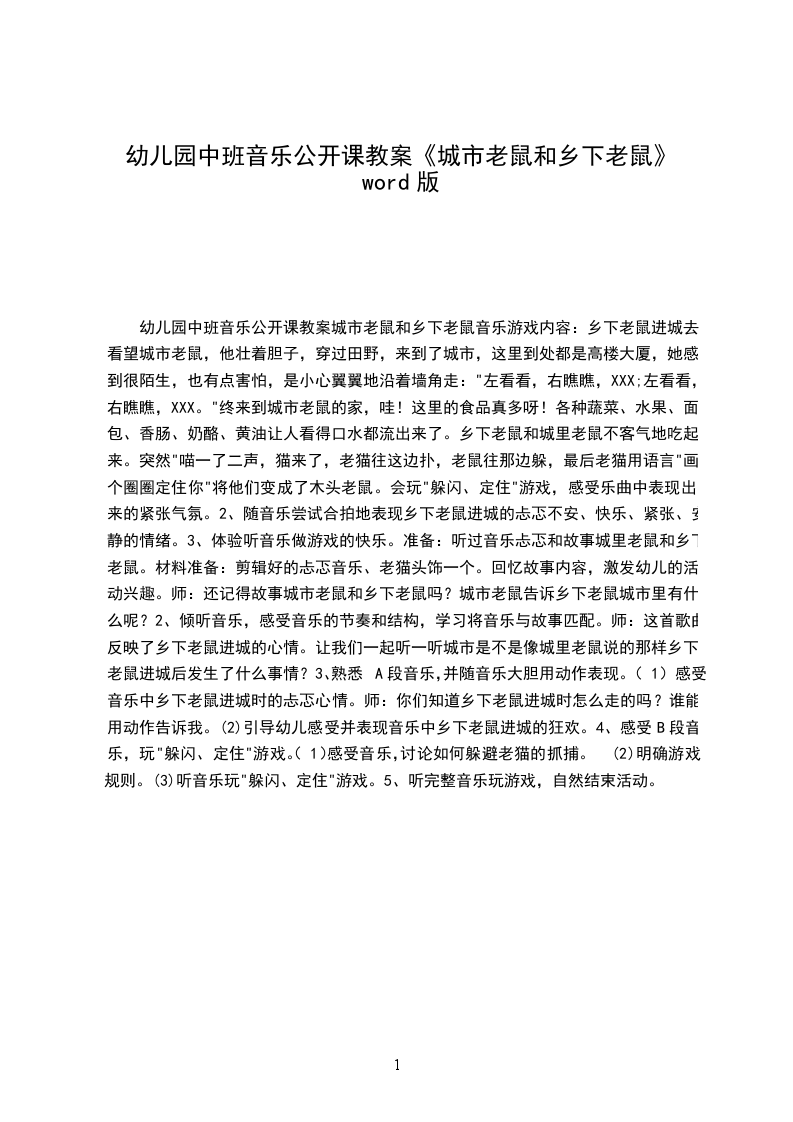 3、体验听音乐做游戏的快乐。【活动准备】经验准备:听过音乐忐忑和故事城里老鼠和乡下老鼠。材料准备:剪辑好的忐忑音乐、老猫头饰一个。【活动过程】