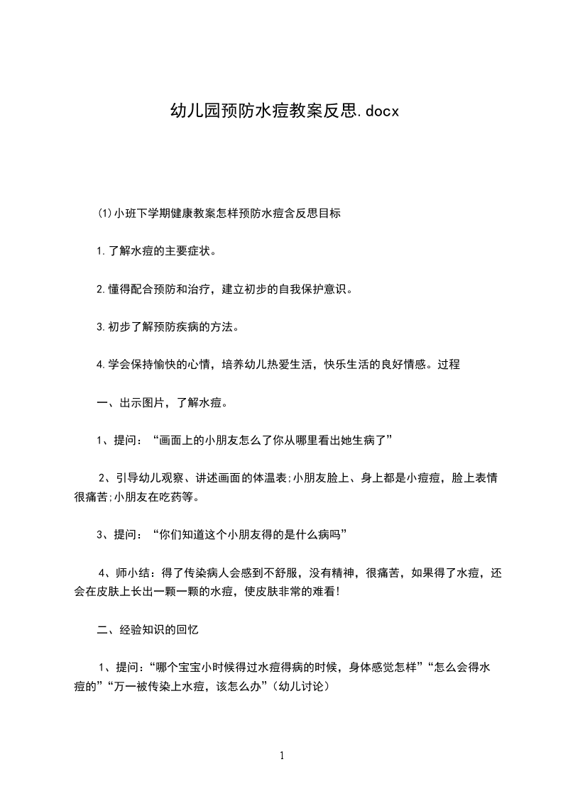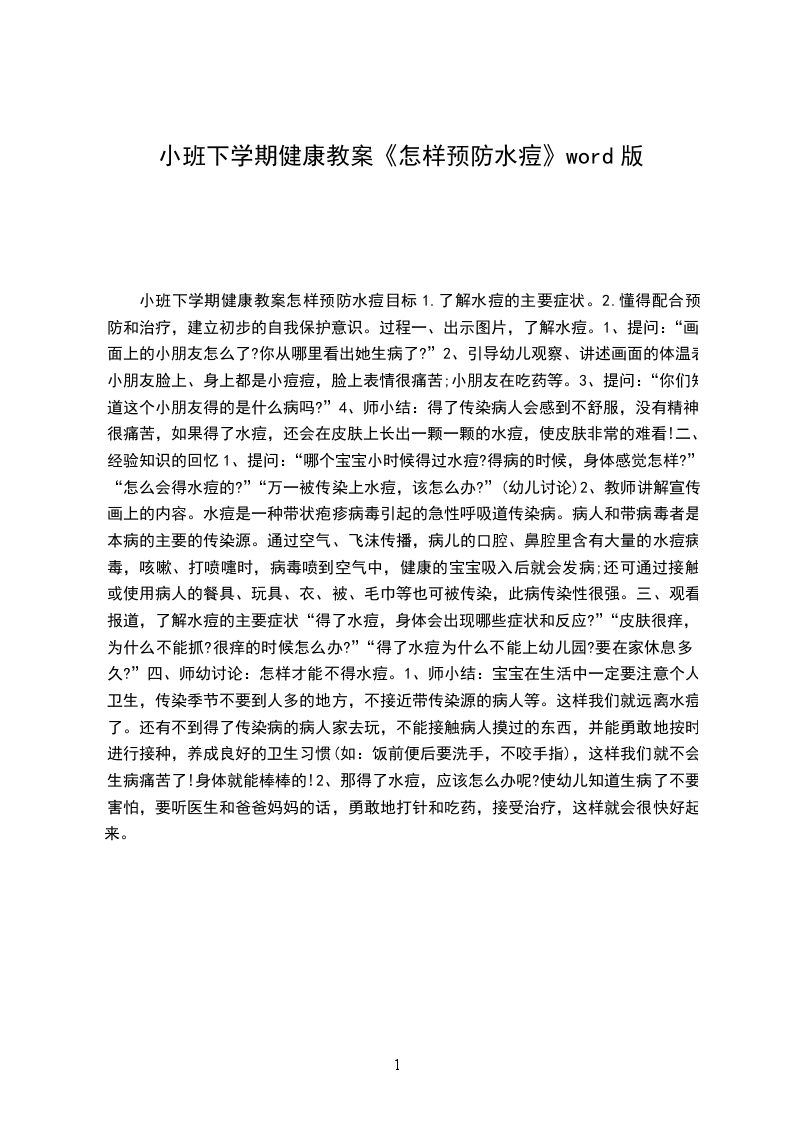 (1)小班下学期健康教案怎样预防水痘含反思目标