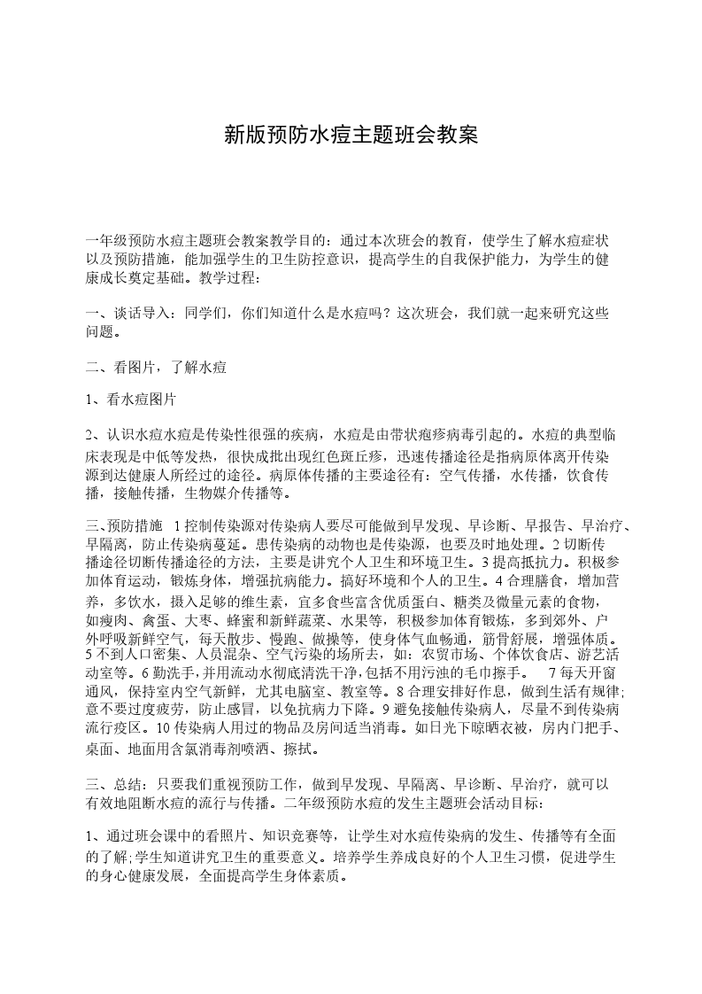 三、观看报道,了解水痘的主要症状“得了水痘,身体会出现哪些症状和反应”“皮肤很痒,为什么不能抓很痒的时候怎么办”“得了水痘为什么不能上教案预防水痘活动目标:了解水痘的主要症状,懂得预防和治疗的自我保护意识。知道得了水痘后,身体不舒服要及时告诉家长和老师。学会保持愉快的心情,培养幼儿热爱生活,快乐生活的良好情感。活动准备: