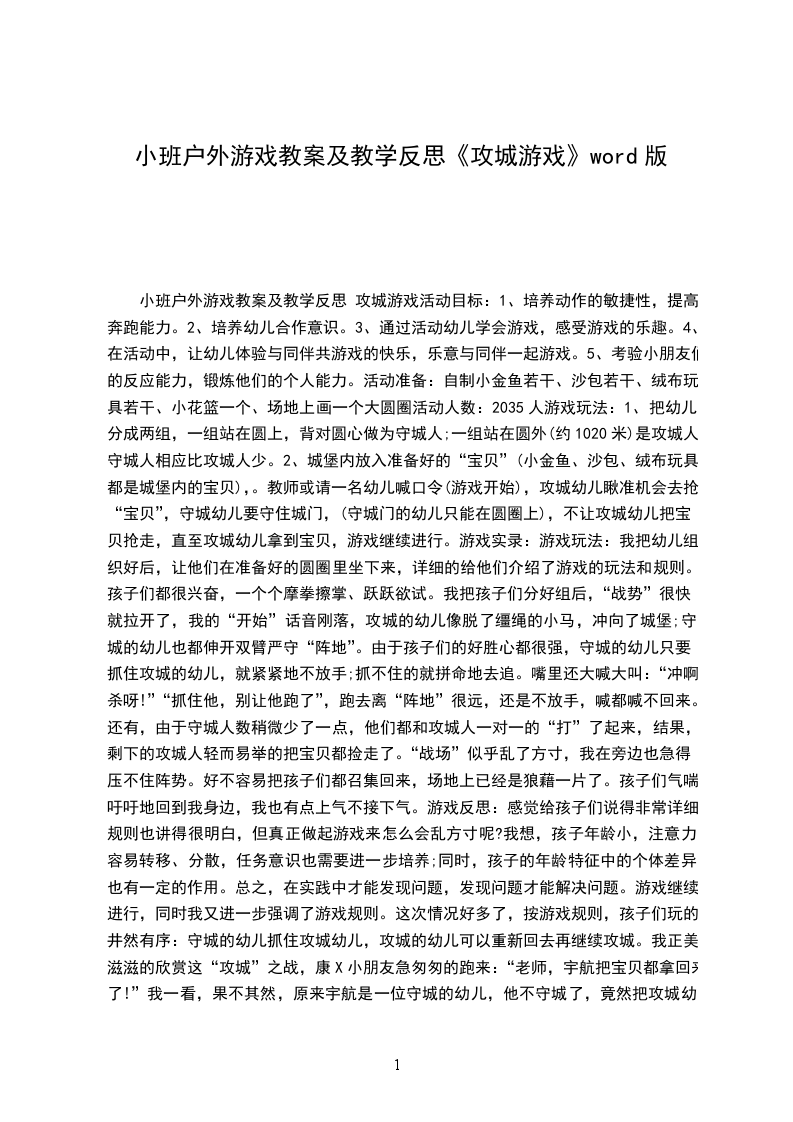 (10)中班户外游戏详案教案反思小动物找家设计意图:小猫、小狗、小兔是幼儿特别喜欢的动物,更喜欢模仿小动物的动作。为了锻炼幼儿的身体,发展幼儿的走、跑、跳的基本动作,设计了本次活动。活动目标: