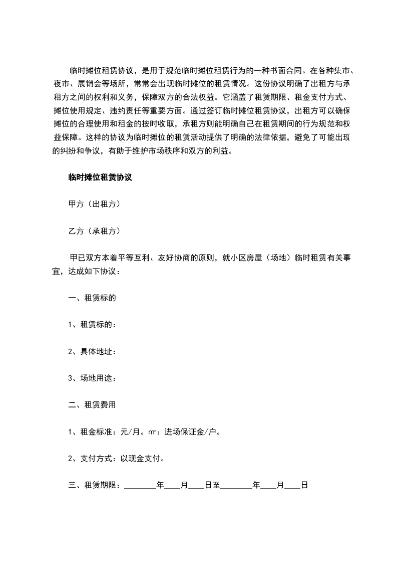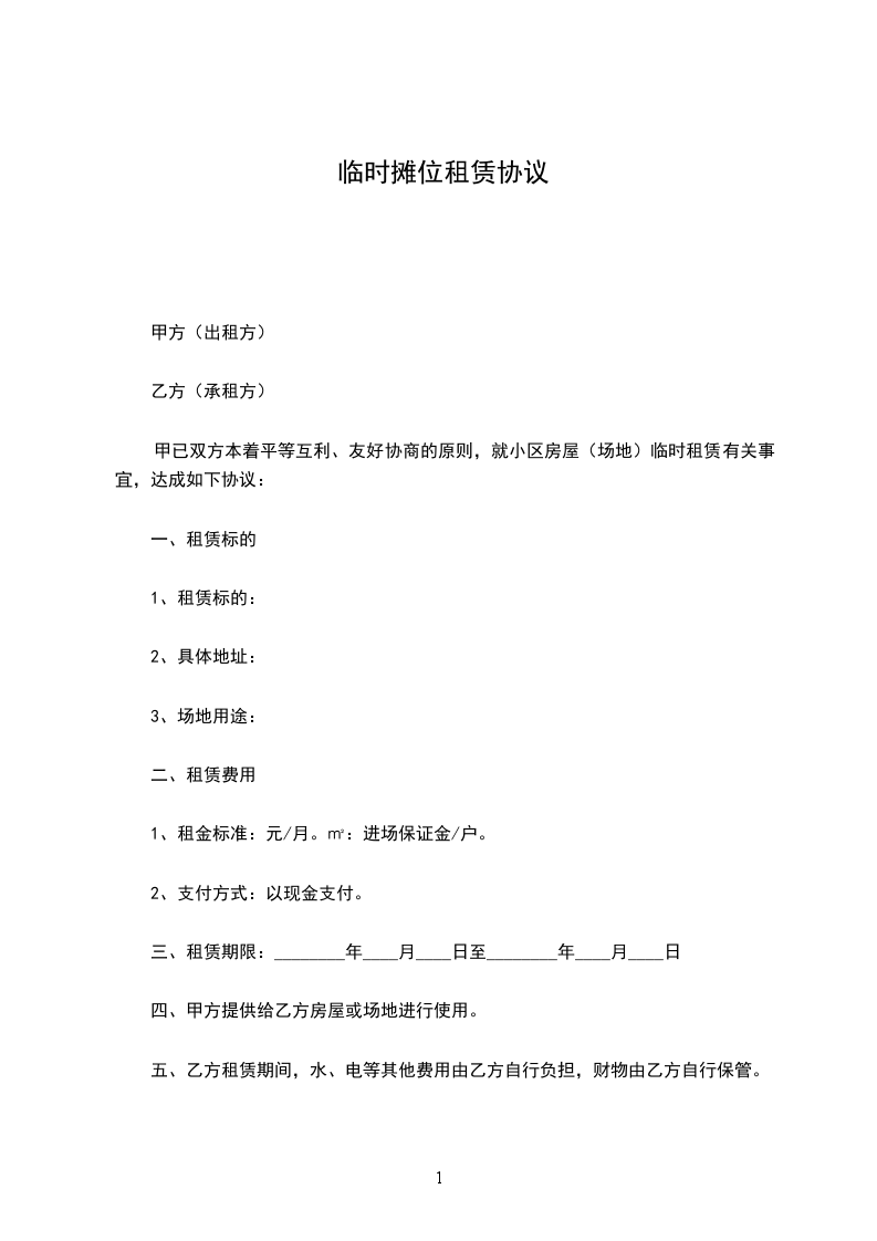 甲已双方本着平等互利、友好协商的原则,就小区房屋(场地)临时租赁有关事宜,达成如下协议: