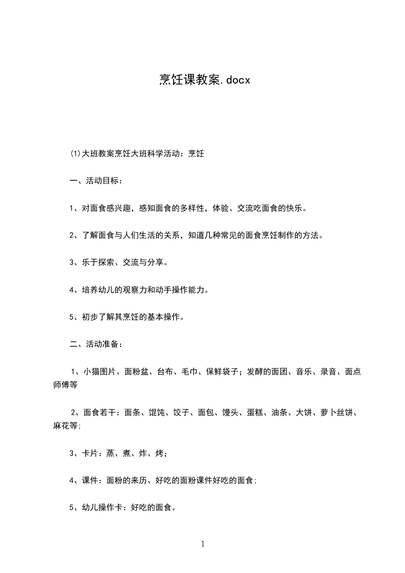 (1)大班教案烹饪大班科学活动:烹饪