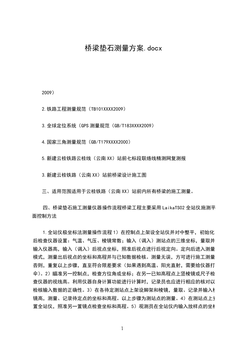 三、适用范围适用于云桂铁路(云南XX)站前内所有桥梁的施工测量。