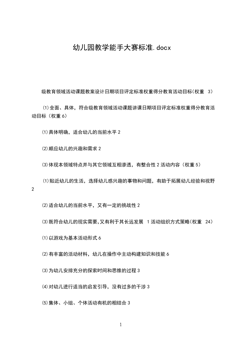 (1)全面、具体,符合级教育领域活动课题讲课日期项目评定标准权重得分教育活动目标(权重6)