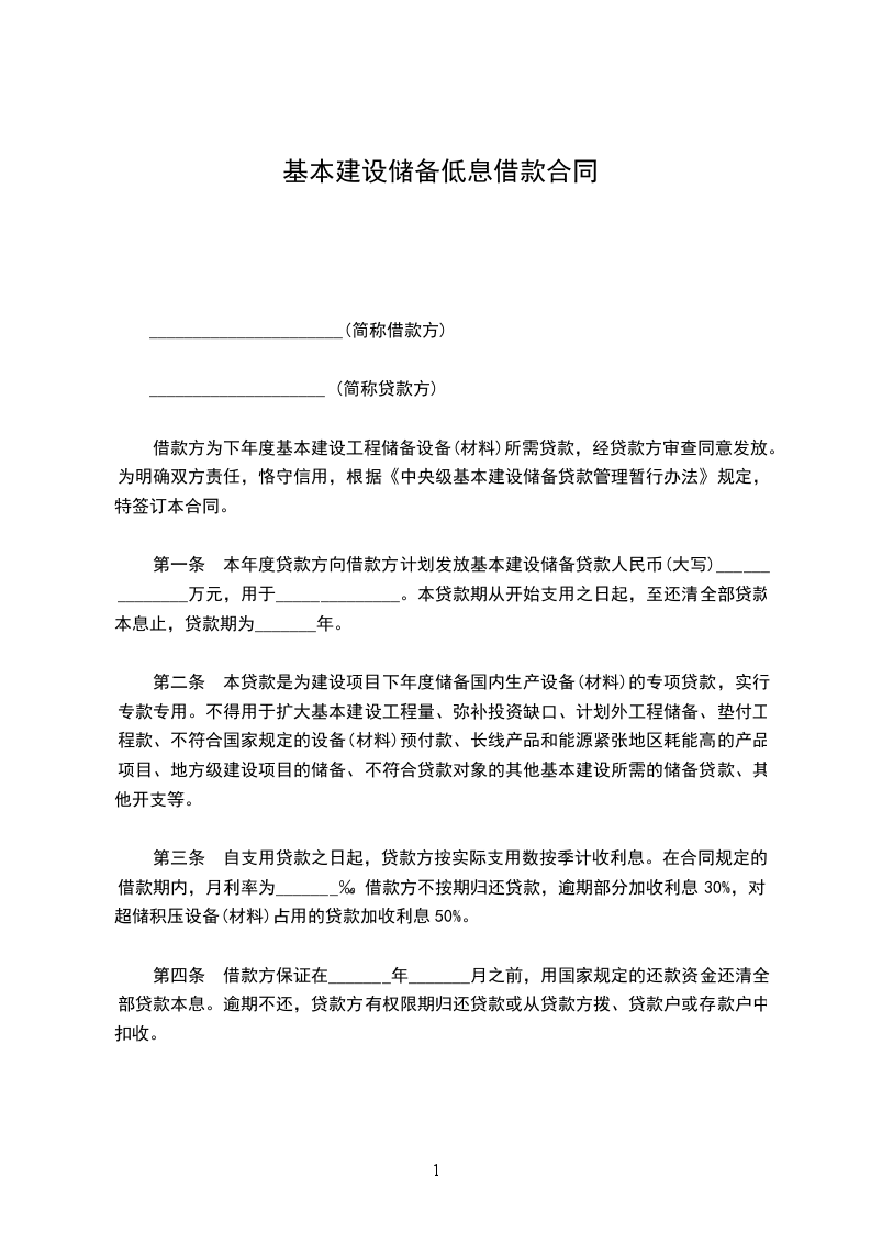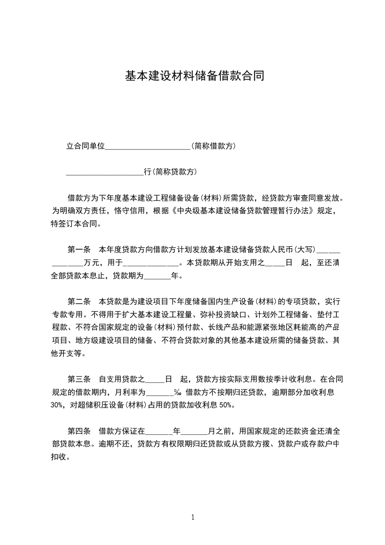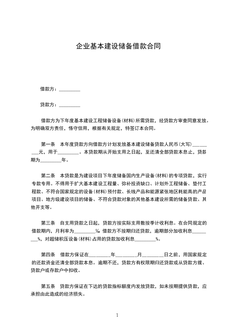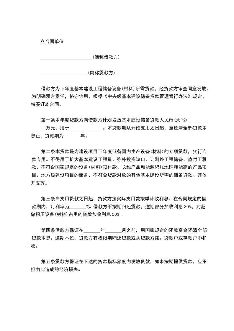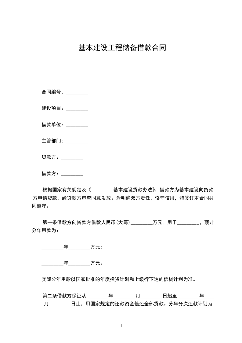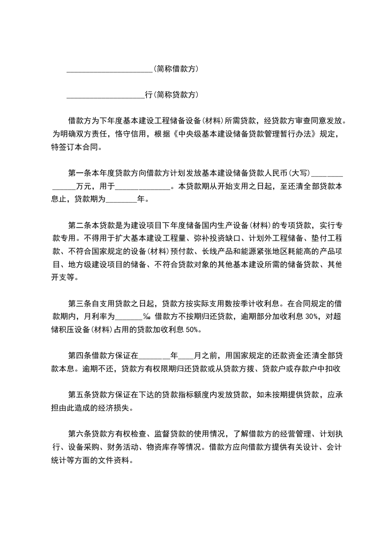 根据国家有关规定及《_________基本建设贷款办法》,借款方为基本建设向贷款方申请贷款,经贷款方审查同意发放。为明确双方责任,恪守信用,特签订本合同共同遵守。
