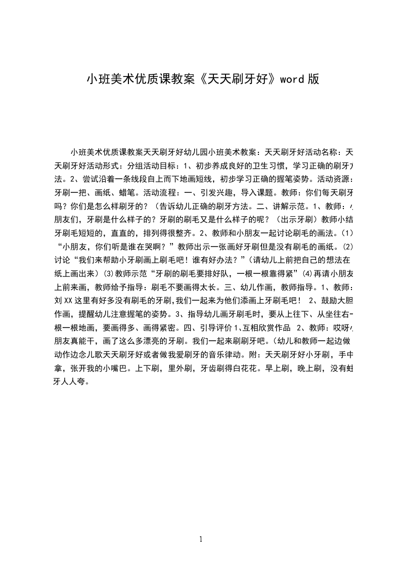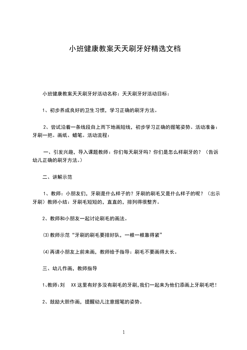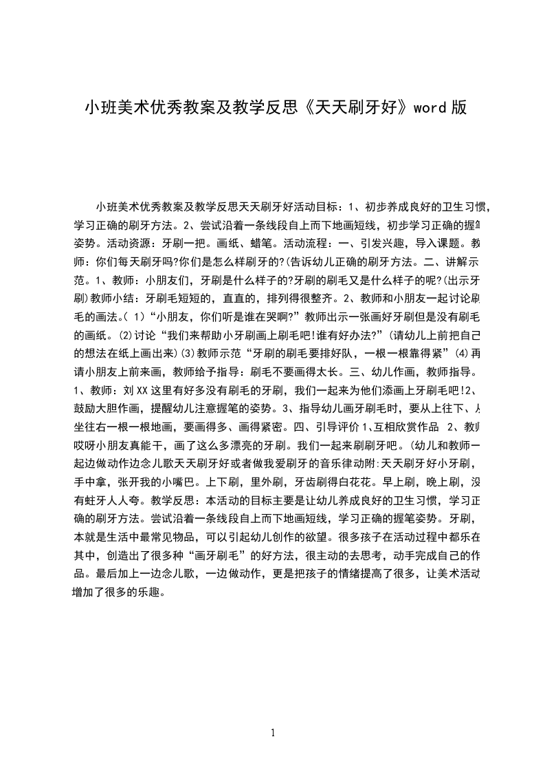 小班美术优质课教案天天刷牙好美术教案:天天刷牙好活动名称:天天刷牙好活动形式:分组活动目标: