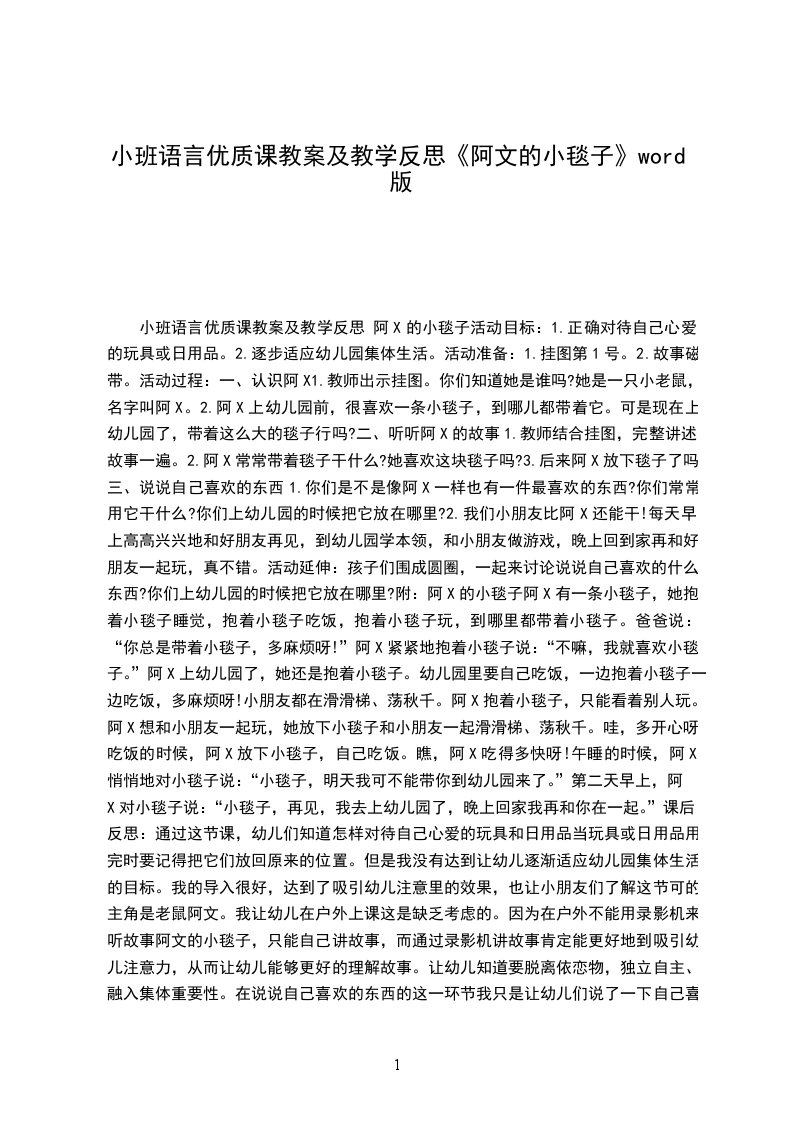 小班语言优质课教案及教学反思阿X的小毯子活动目标: