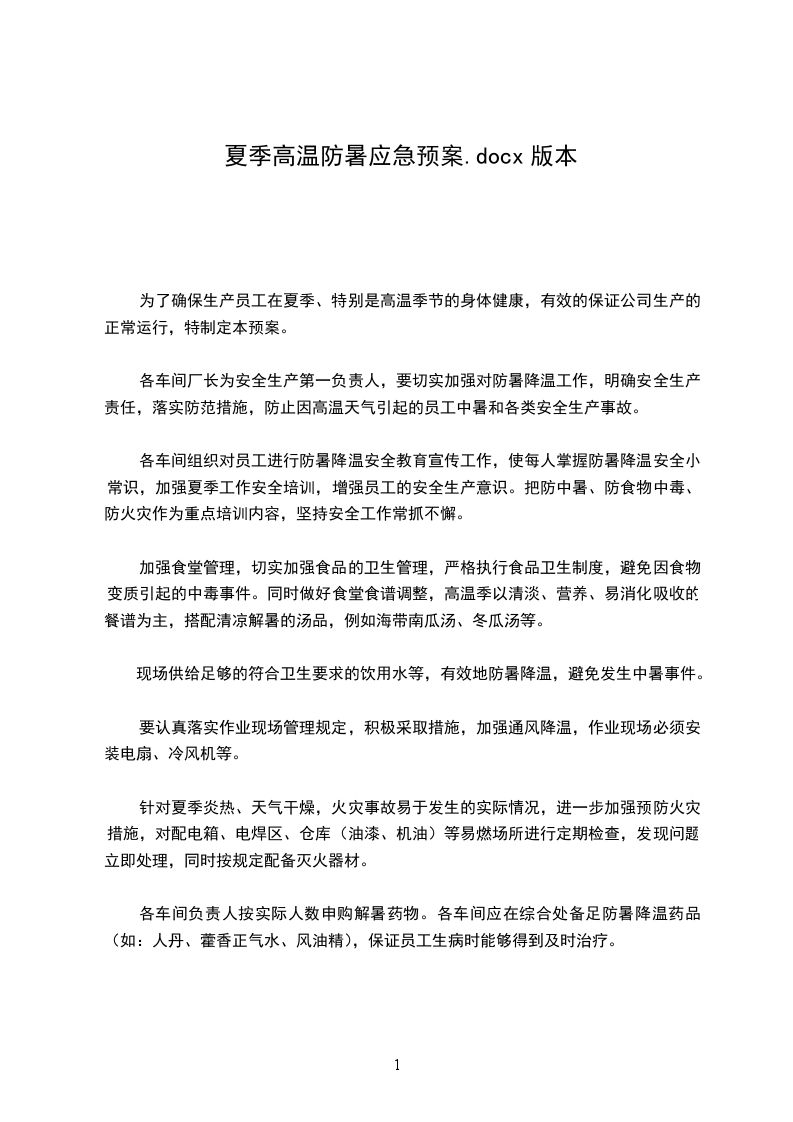 二、适用范围高温中暑事件,及其它以高温条件为直接诱因导致社会公众身体健康明显受损,甚至危及社会公众生命安全的公共卫生事件,可参照本预案组织实施相关卫生应急处置工作。