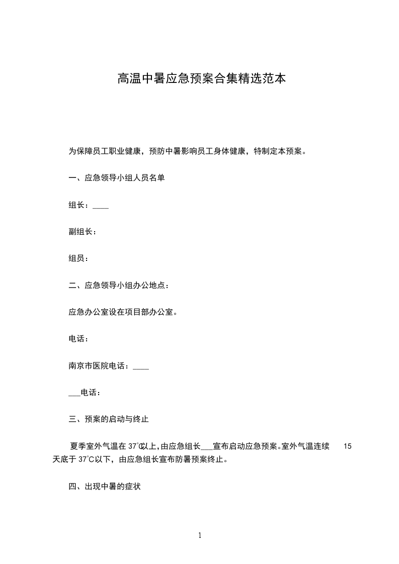 一、组织保障应急领导小组负责高温中暑事件应急处置的统一指挥,各部门人员按照各自的职责,积极做好高温中暑事件的应急处置工作,确保事件发生后快速响应、科学处置,共同应对高温中暑事件。