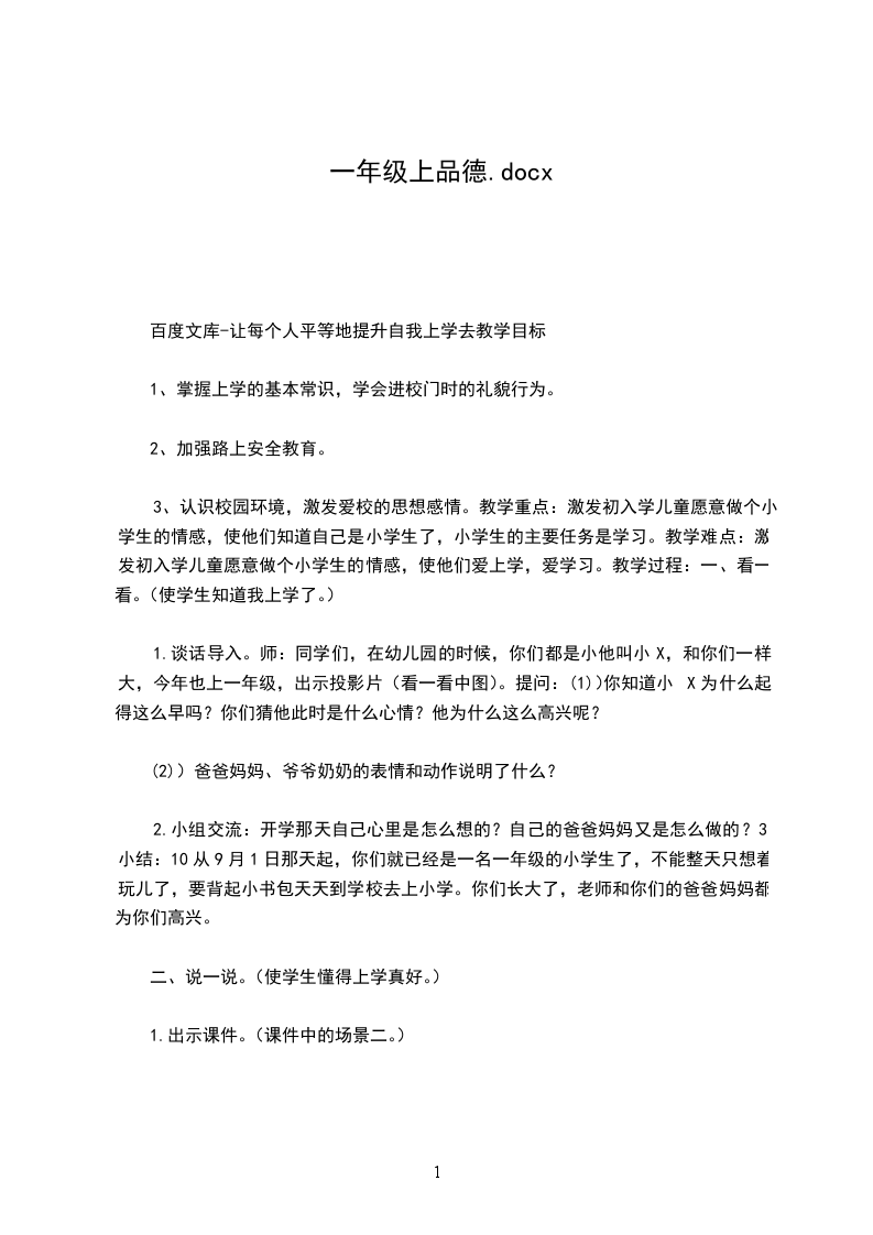 1、掌握上学的基本常识,学会进校门时的礼貌行为。