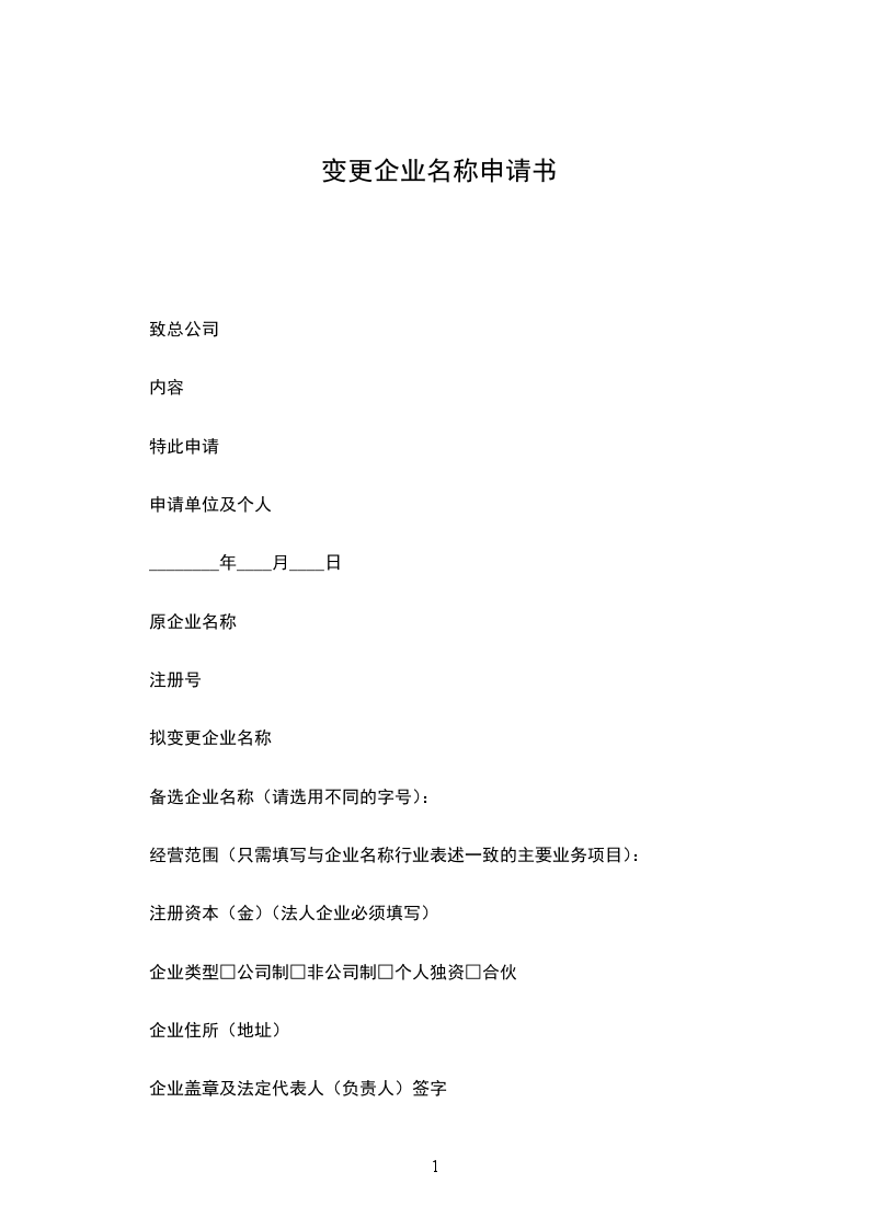 1企业名称变更申请书本表第1页