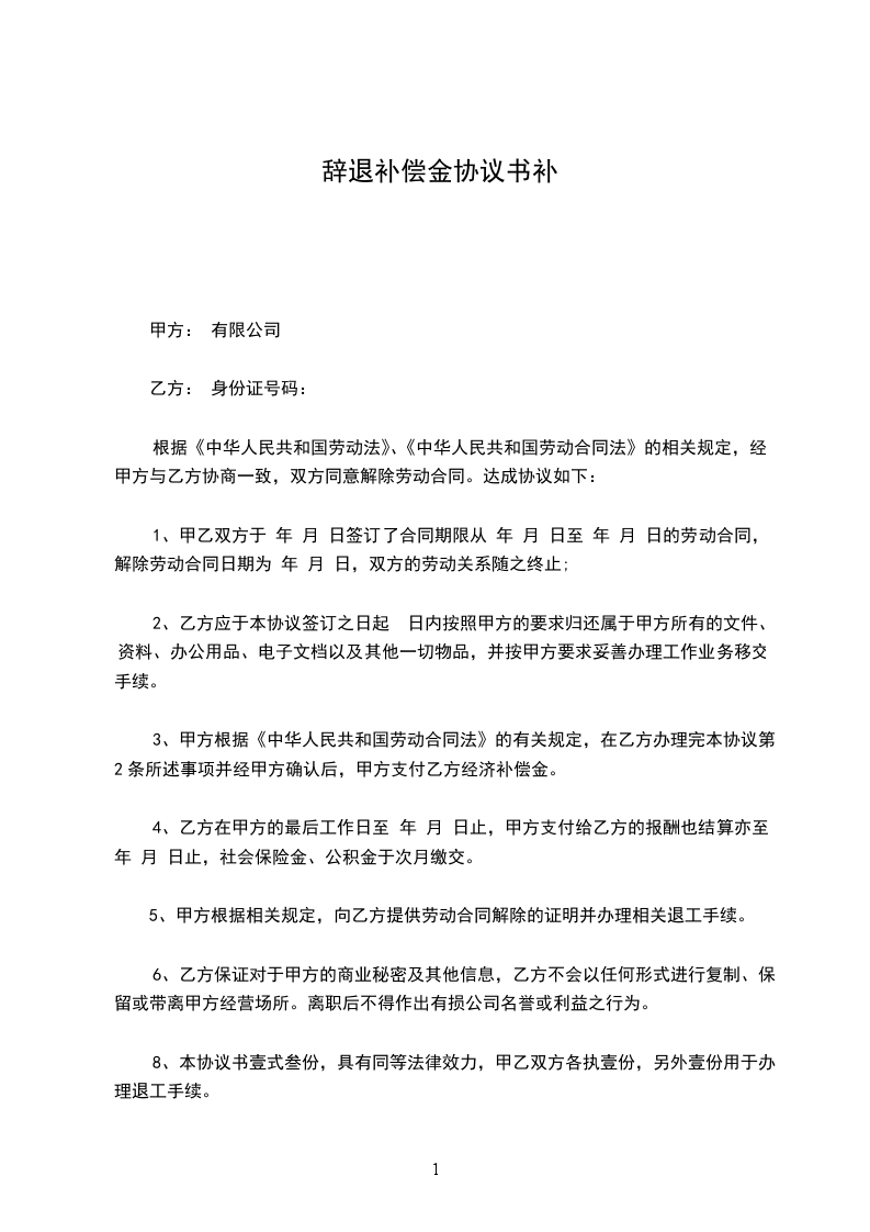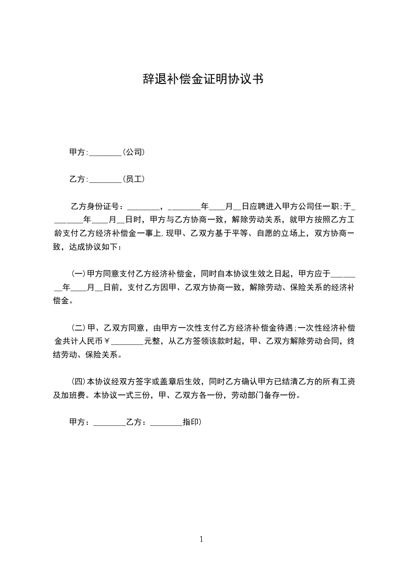 .本协议书壹式叁份,具有同等法律效力,甲乙双方各执壹份,另外壹份用于办理退工手续。
