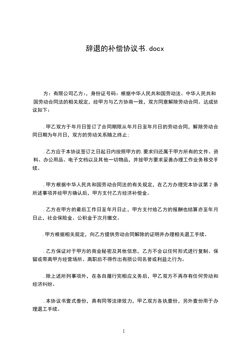 方:有限公司乙方:,身份证号码:根据中华人民共和国劳动法、中华人民共和国劳动合同法的相关规定,经甲方与乙方协商一致,双方同意解除劳动合同。达成协议如下: