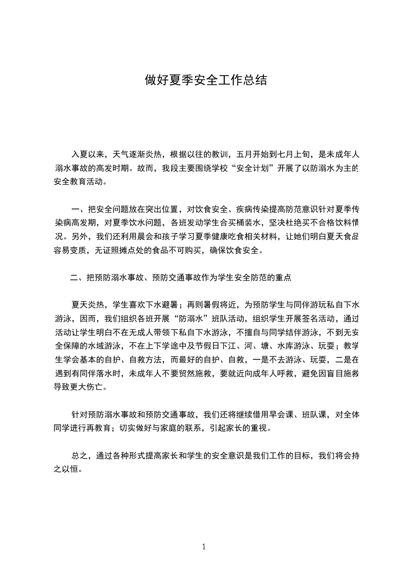 (1)、警示教育:交通安全、食品卫生安全、消防安全、夏季防溺水等。