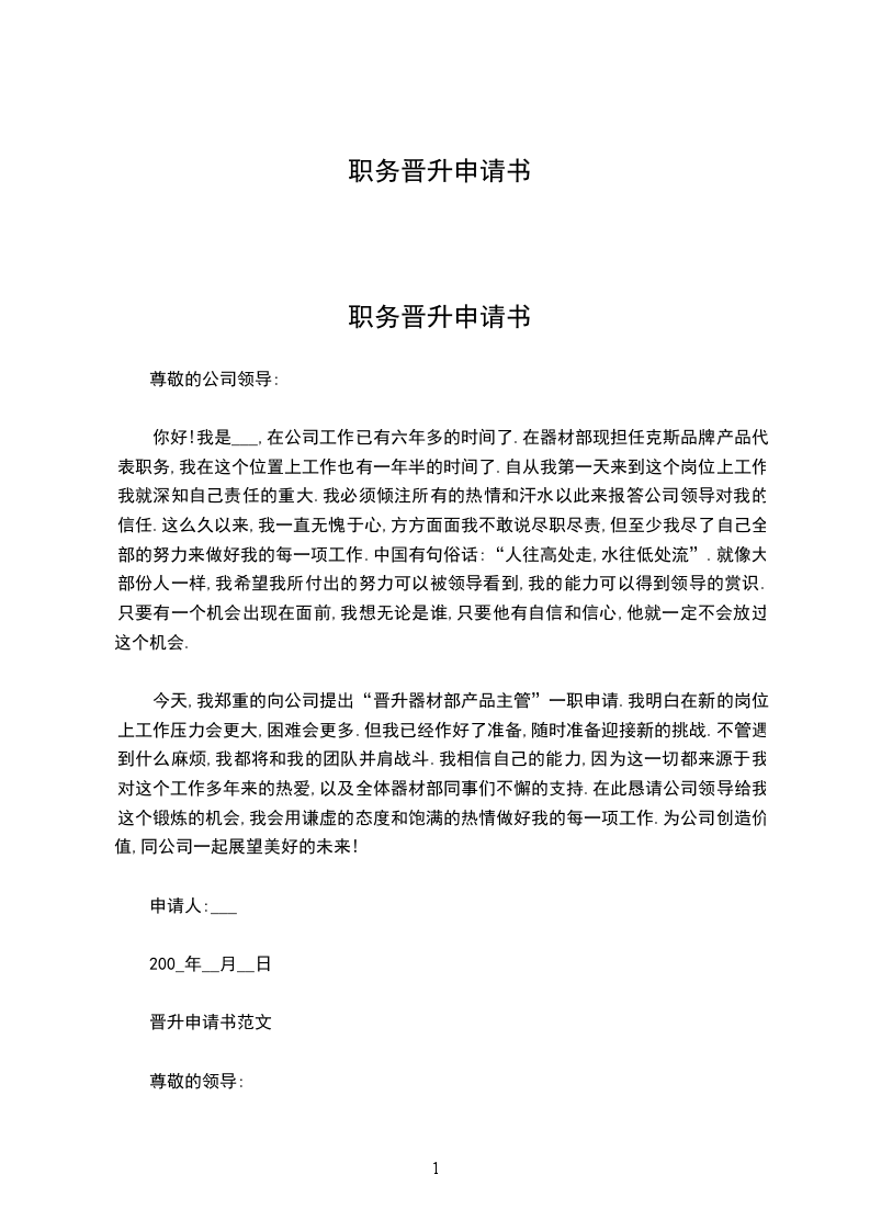 司领导:我是综合办公室职员_,进入公司工作至今已有一年多时间,对公司的企业文化和经营理念了解并认同。现提出升职申请主要原因是公司的发展速度日渐增快,组织结构越来越清晰,公司对人才的需求也随之增强,作为公司一员,我义不容辞地毛遂自荐提出升职申请综合办公室主管。在_集团工作的这段时间,在领导和同事的指导及关怀下,我从盲目的工作到有目标的工作,从有目标的工作到有计划的工作。行政部门是上下联络和沟通的中间体,既要取信于内,也要取信于外,重要的是人与人之间多沟通,做事有条理。同时,借此申请将我在10年上半年取得的工作成绩汇报如下:1、建立电子文档的人事档案汇总,五大员分类管理工作(现转至人力资源部);与工程部共同办理部分五大员年检工作,服务于项目部需求。
