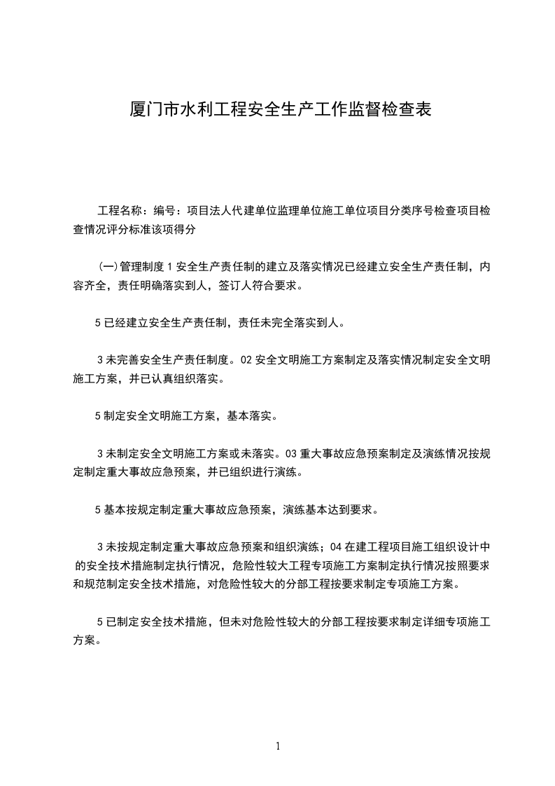 工程名称:编号:项目法人代建单位监理单位施工单位项目分类序号检查项目检查情况评分标准该项得分