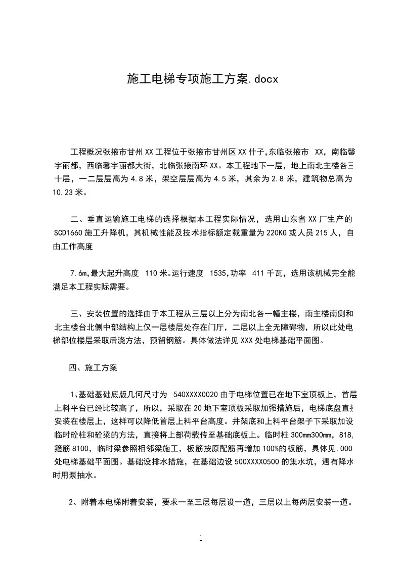 6、此施工电梯在_商会中心工程使用时,预计安装高度120因考虑到工程施工现场情况,基础按上述做法进行。