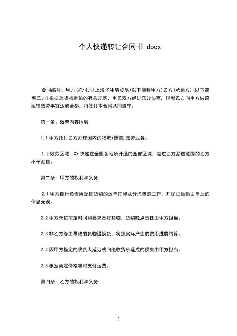 4.每项快递业务,甲方须开具业务委托单,注明委托时间和收件时间。
