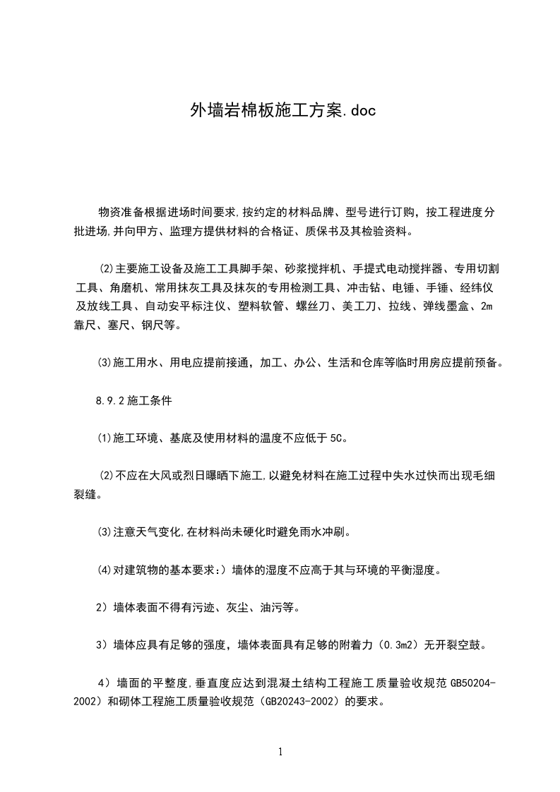 1.41施工现场环境温度和墙体表面温度在施工及施工后24小时内不得低于5C,风力不大于1.42夏季施工应避免阳光直射,必要时在脚手架上搭设临时遮阳设施,遮挡墙面。