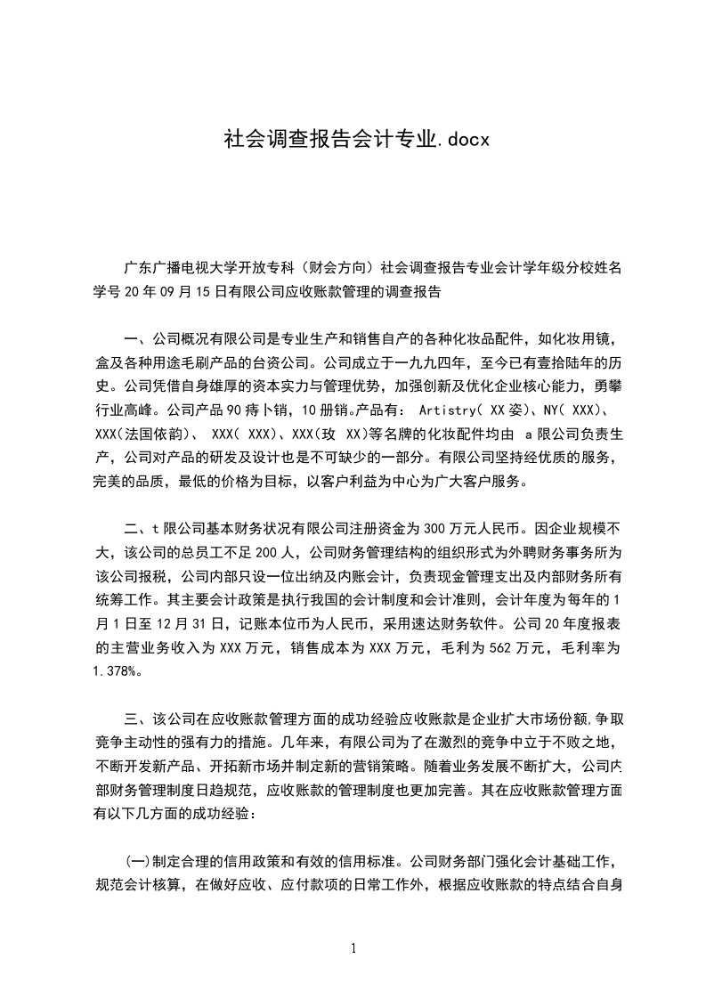 广东广播电视大学开放专科(财会方向)社会调查报告专业会计学年级分校姓名学号20年09月15日有限公司应收账款管理的调查报告