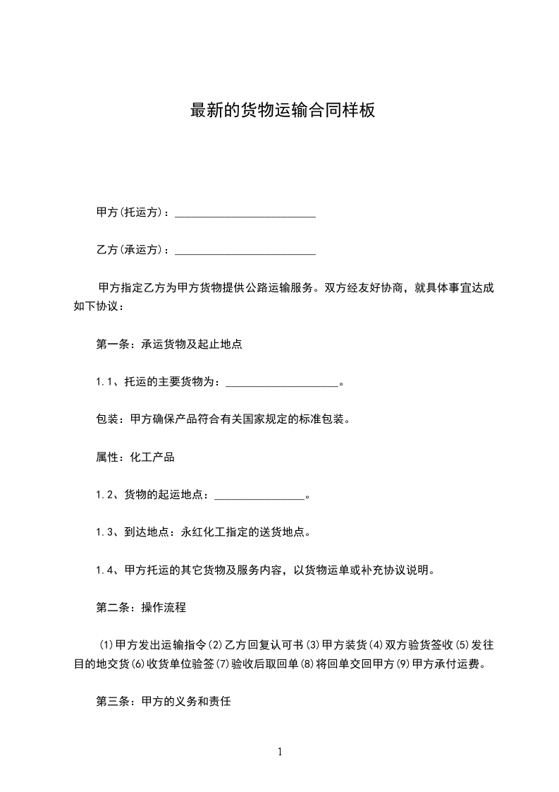 甲方指定乙方为甲方货物提供公路运输服务。双方经友好协商,就具体事宜达成如下协议:
