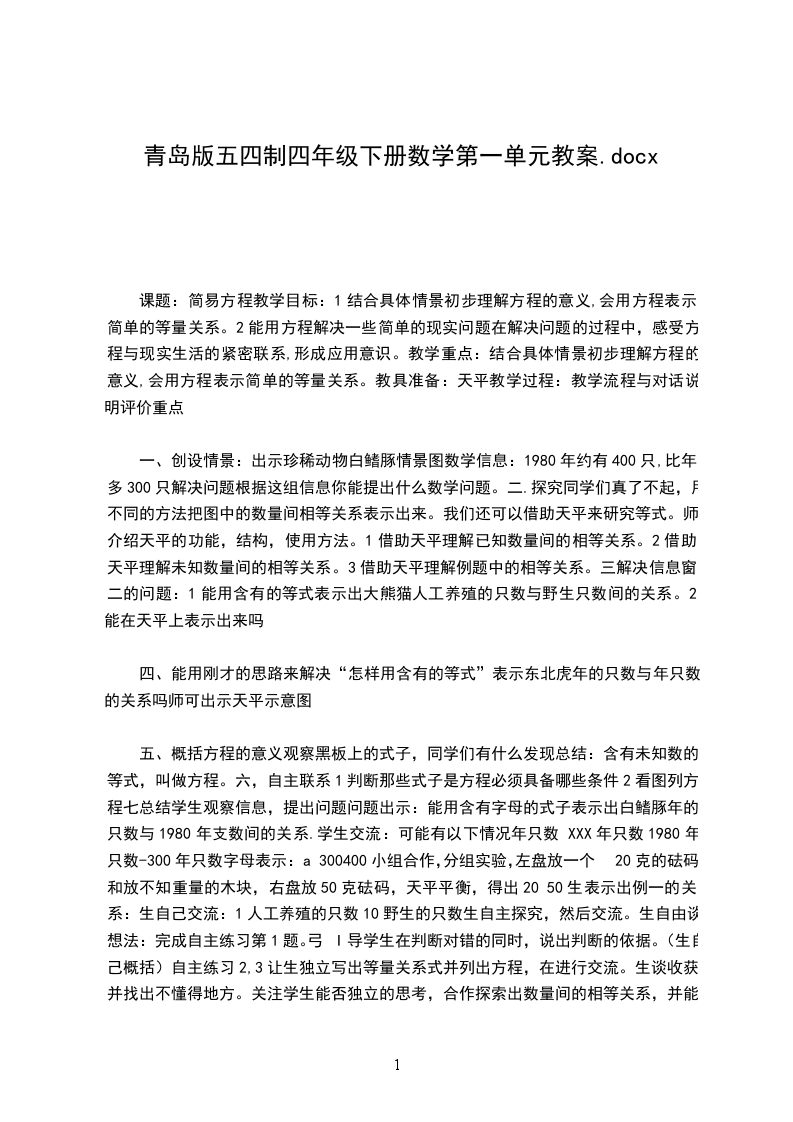 一、创设情景:出示珍稀动物白鳍豚情景图数学信息:1980年约有400只,比年多300只解决问题根据这组信息你能提出什么数学问题。二.探究同学们真了不起,用不同的方法把图中的数量间相等关系表示出来。我们还可以借助天平来研究等式。师介绍天平的功能,结构,使用方法。1借助天平理解已知数量间的相等关系。2借助天平理解未知数量间的相等关系。3借助天平理解例题中的相等关系。三解决信息窗二的问题:1能用含有的等式表示出大熊猫人工养殖的只数与野生只数间的关系。2能在天平上表示出来吗