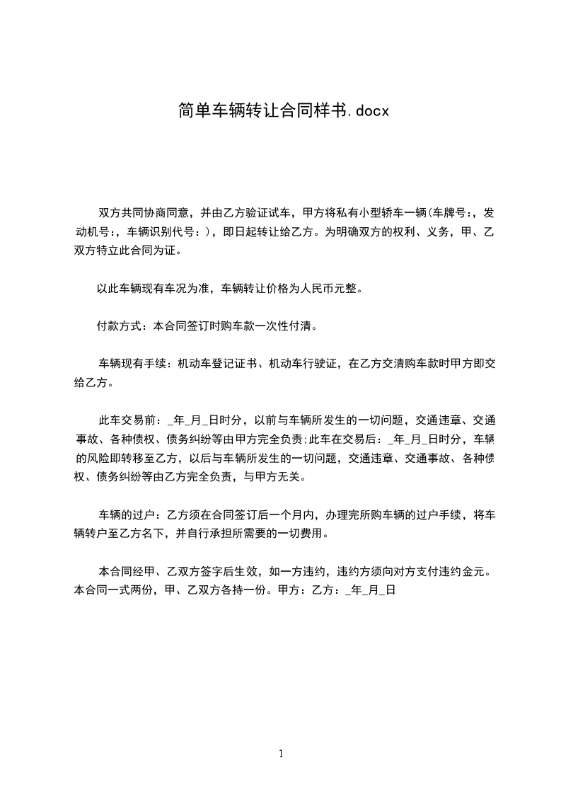 购车方:_(简称:甲方)身份证号:_售车方:_(简称:乙方)身份证号:_甲、乙双方经过平等、友好协商一致,就乙方将其所有的车辆转让给甲方的相关事宜,达成如下协议,以兹共同遵守:第一条乙方将其所有的(车牌号:运输证号:长字车辆经营范围:项)转让给甲方。