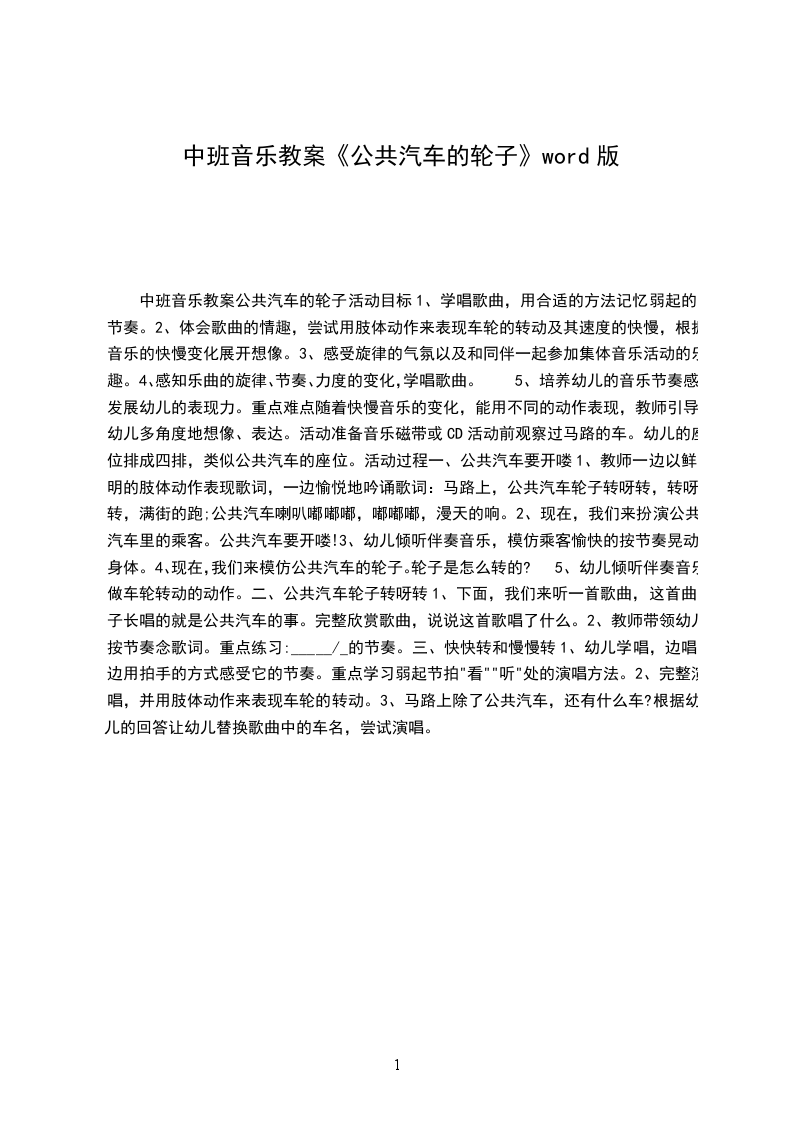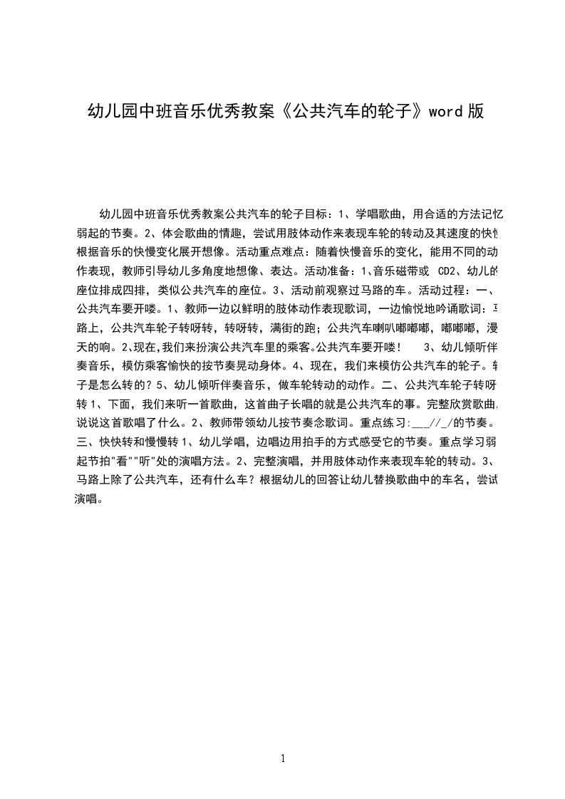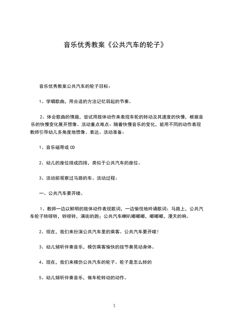 音乐优秀教案公共汽车的轮子目标: