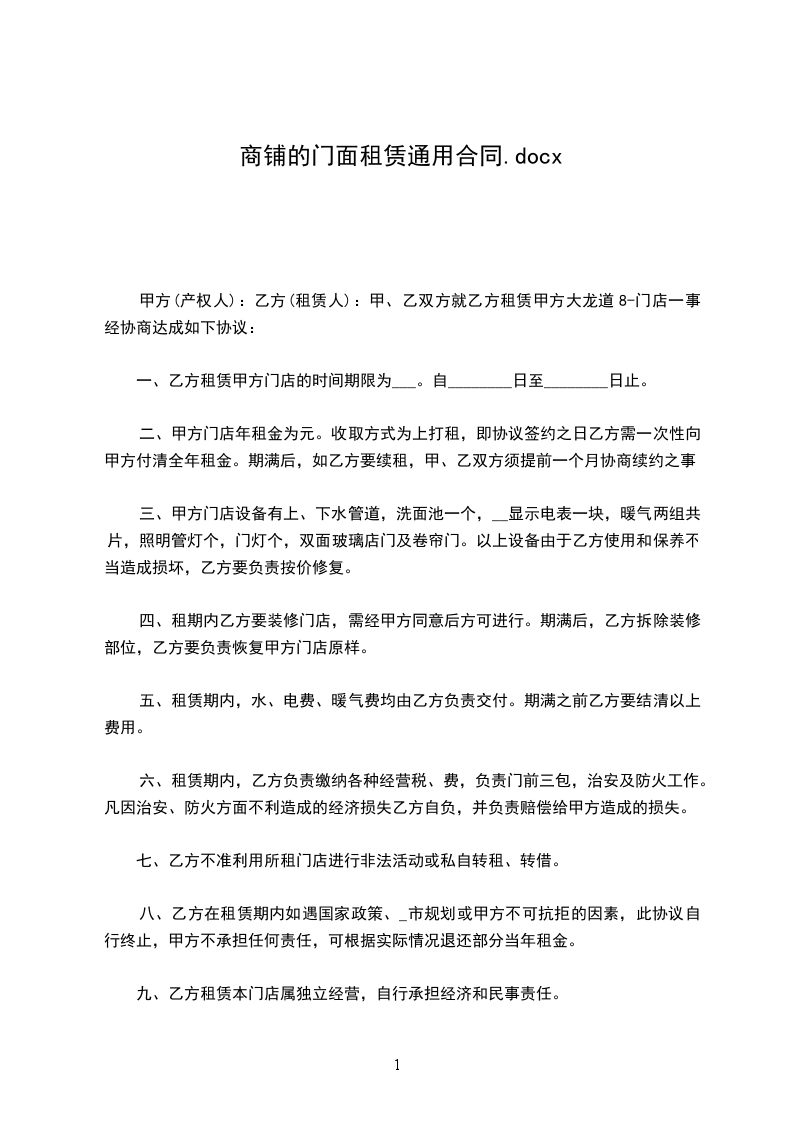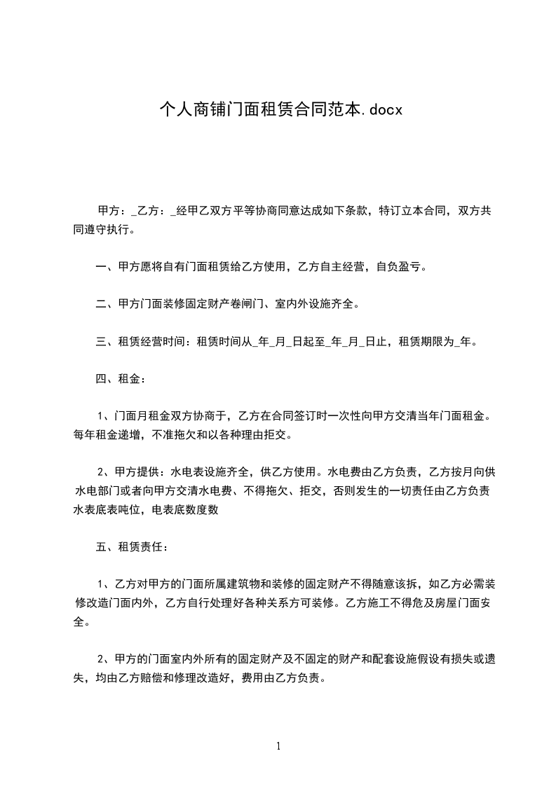 1、租期五年:_年_月_日至_年_月_日。