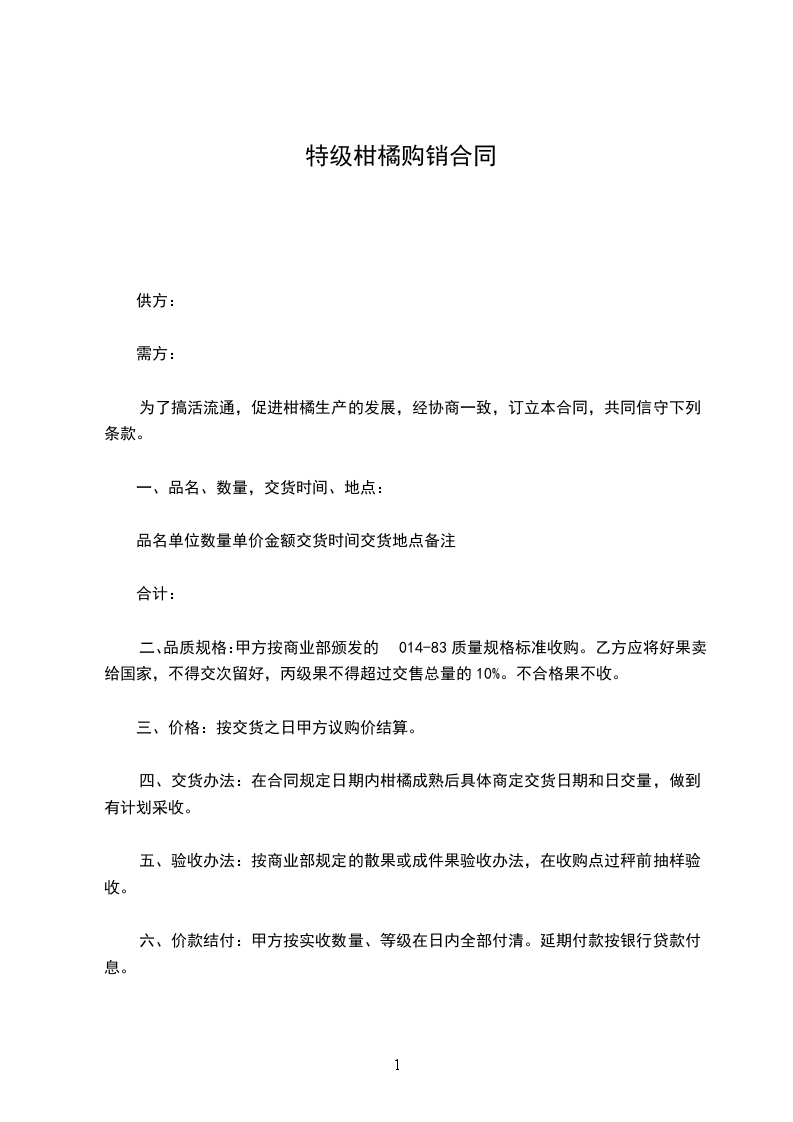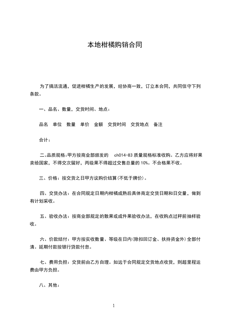 方(甲方):_供方(乙方):_为了搞活流通,促进柑橘生产的进展,经协商全都,订立本合同,共同信守下列条款。
