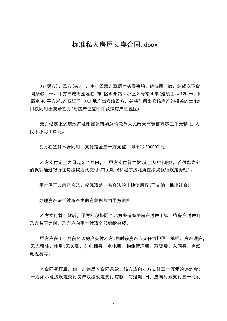 方(卖方):乙方(买方):甲、乙双方就房屋买卖事项,经协商一致,达成以下合同条款:一、甲方自愿将坐落在_市_区渝州路2小区3号楼4单(建筑面积120米,储藏室40平方米,产权证号XXX地产出卖给乙方,并将与所出卖该房产的相关的土地使用权同时出卖给乙方(附房产证复印件及该房产位置图)。