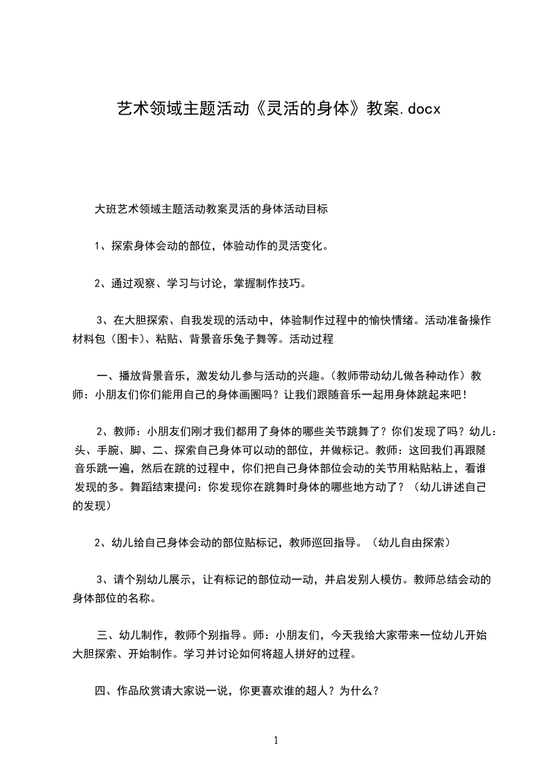 3、请个别幼儿展示,让有标记的部位动一动,并启发别人模仿。教师总结会动的身体部位的名称。