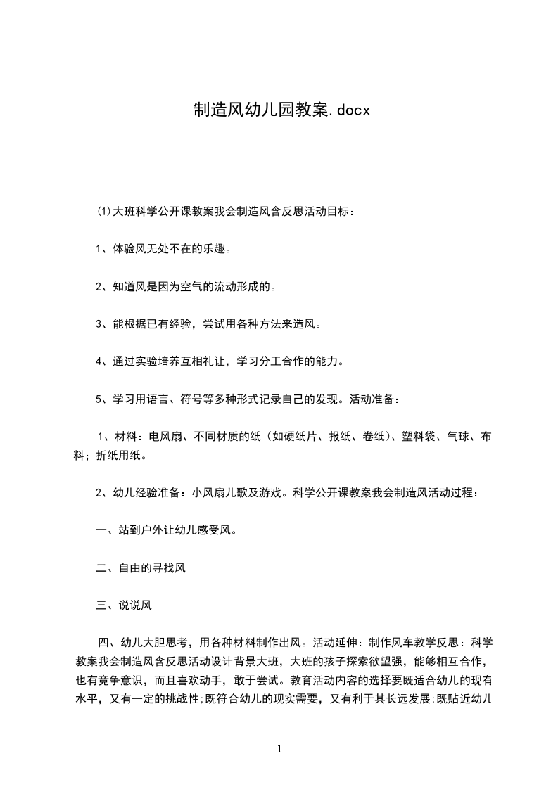 (1)大班科学公开课教案我会制造风含反思活动目标: