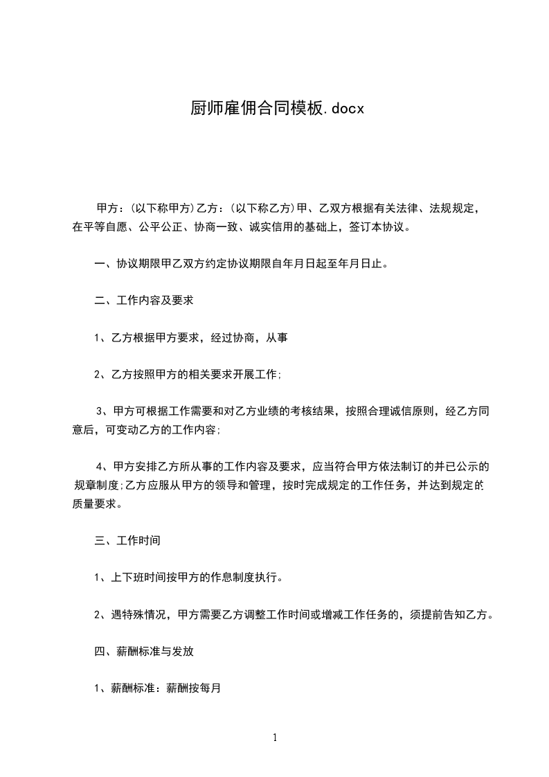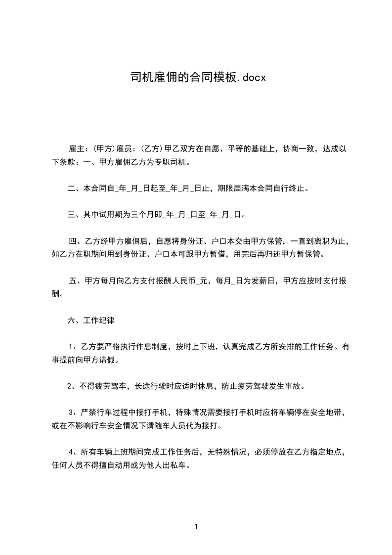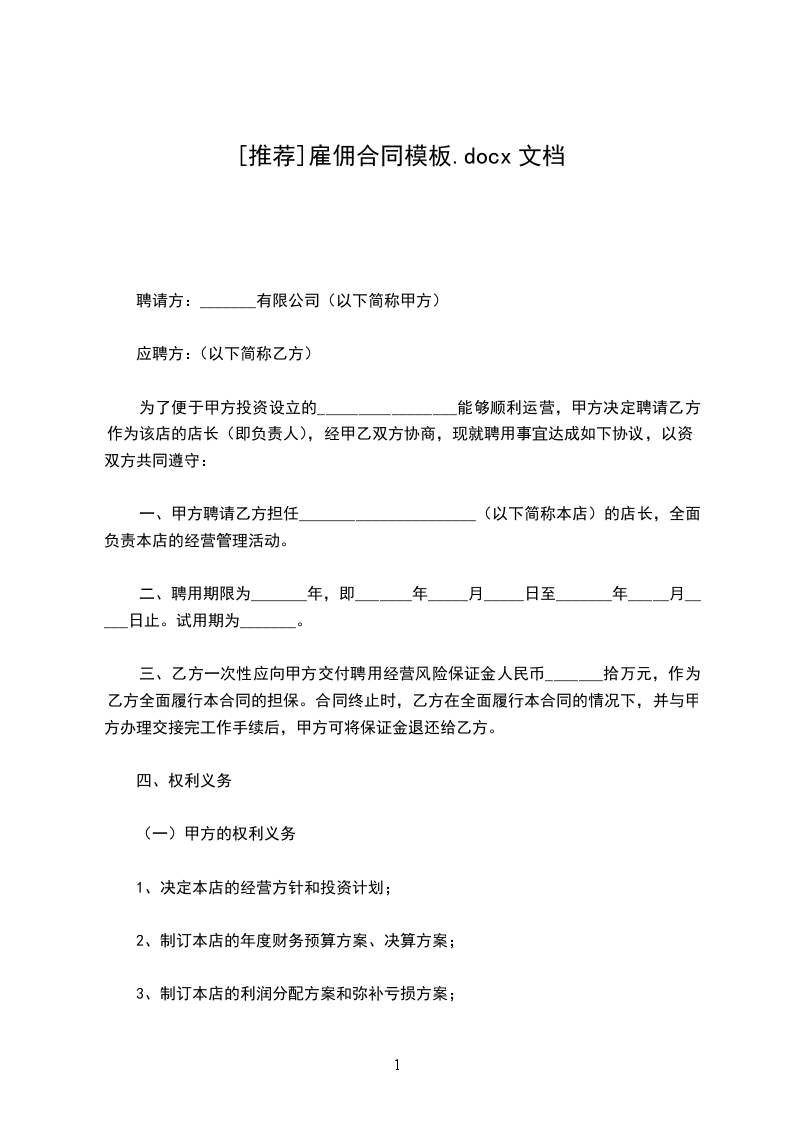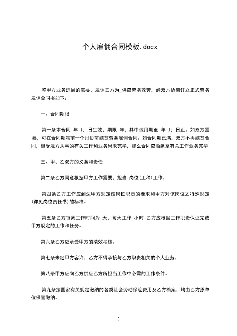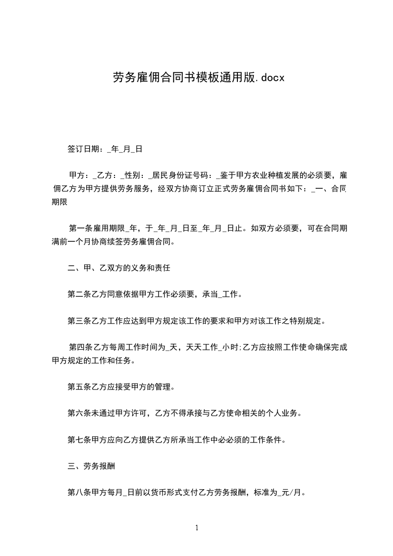 雇佣合同模板一:甲乙双方协商一致,签订本合同。