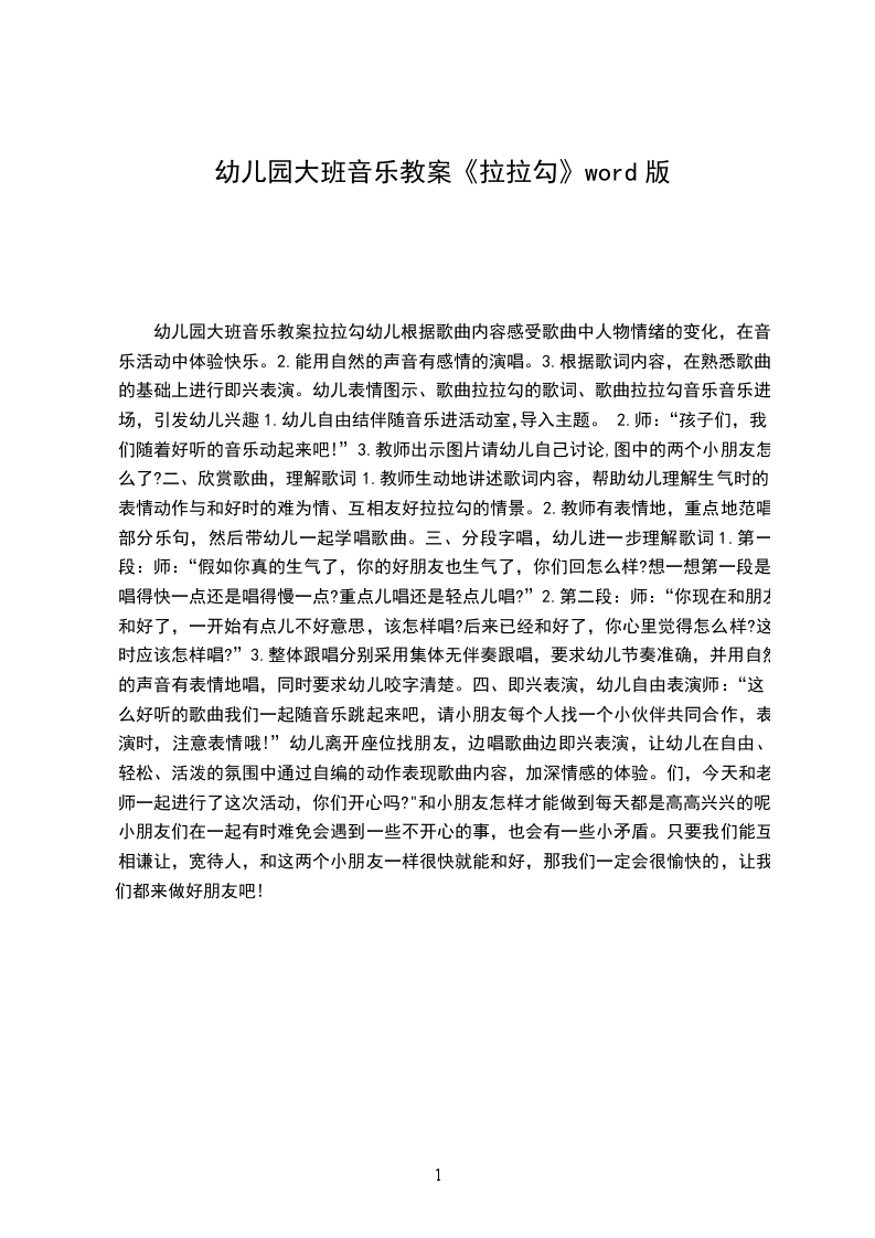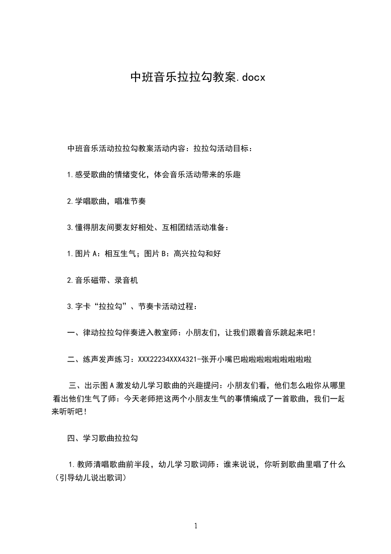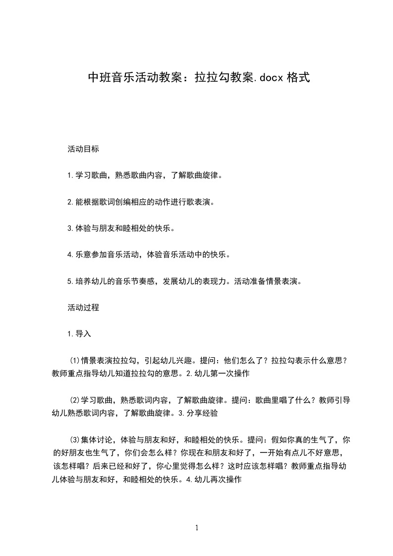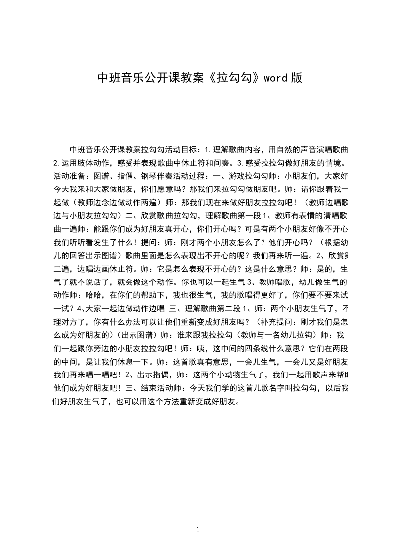 中班音乐活动拉拉勾教案活动内容:拉拉勾活动目标: