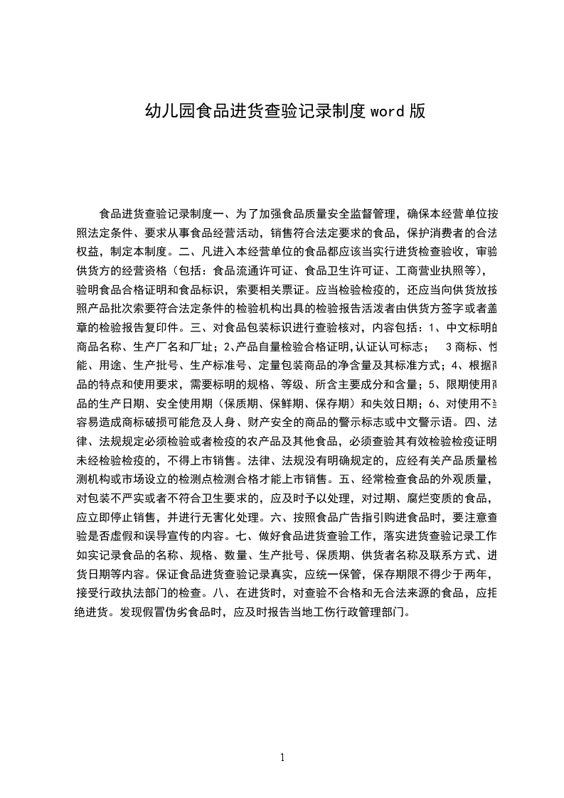 济南市槐荫实验小学附属幼儿园餐饮服务单位食品进货查验记录管理制度食品采购索证索票、进货查验和采购记录行为,保障公众餐饮安全,根据食品安全法、食品安全法实施条例、餐饮服务食品安全监督管理办法和餐饮服务食品安全操作规范等法律、法规及规章,制定本管理制度。