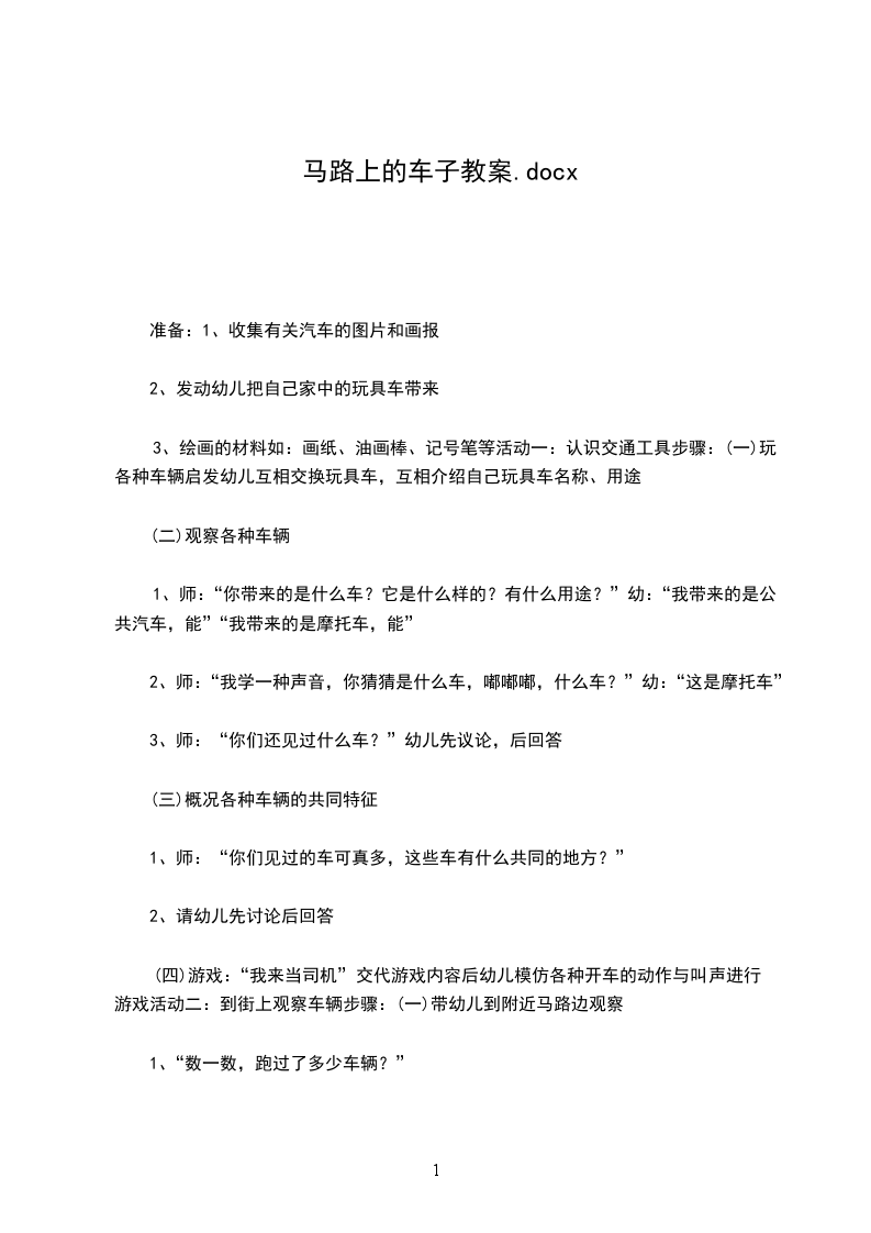 1.场地准备:选择一个相对比较安全的环境,供幼儿观察马路上的汽车。规划参观路线。