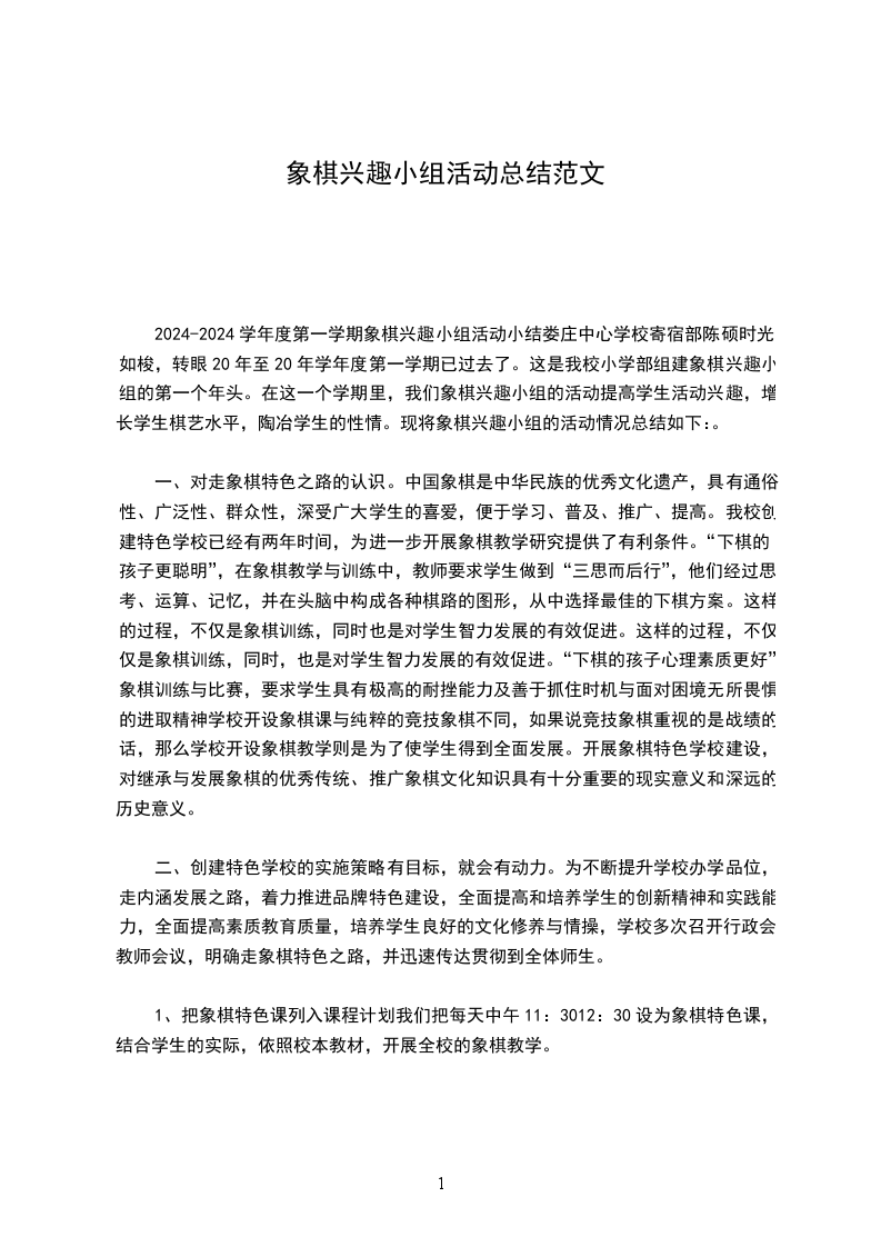 2024-2024学年度第一学期象棋兴趣小组活动小结娄庄中心学校寄宿部陈硕时光如梭,转眼20年至20年学年度第一学期已过去了。这是我校小学部组建象棋兴趣小组的第一个年头。在这一个学期里,我们象棋兴趣小组的活动提高学生活动兴趣,增长学生棋艺水平,陶冶学生的性情。现将象棋兴趣小组的活动情况总结如下:。