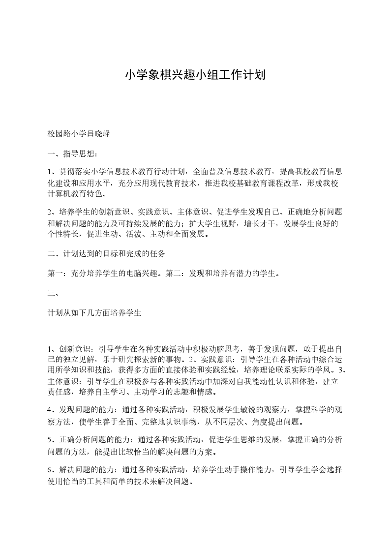 3、全面普及与训练提高相结合特色活动要发展,要提升,要具有长盛不衰的生命力。就要让学校师生适时获得甘美的果实,成功的喜悦,也就是要努力让学校的特色活动取得丰硕的成果,因此要求平时学生人人有象棋,个个参与象棋活动,学校总务部门积极配合,配备了象棋兴趣小组活动室,购买了磁性象棋2副;600副象棋分发于二至六年级,让每位学生都参与活动。我们在普及象棋活动的基础上还积极抓好学生的训练比赛,培养优秀的小棋手,让他们在各类型的比赛中获取好成绩。我们组织了学校的象棋队,由王XX负责校内训练,课外聘请了陈XX进行实战训练,让学生在竞赛中体验成功,感受快乐,总结经验,提高棋艺。