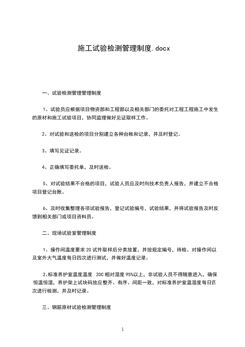 一、试验检测管理管理制度