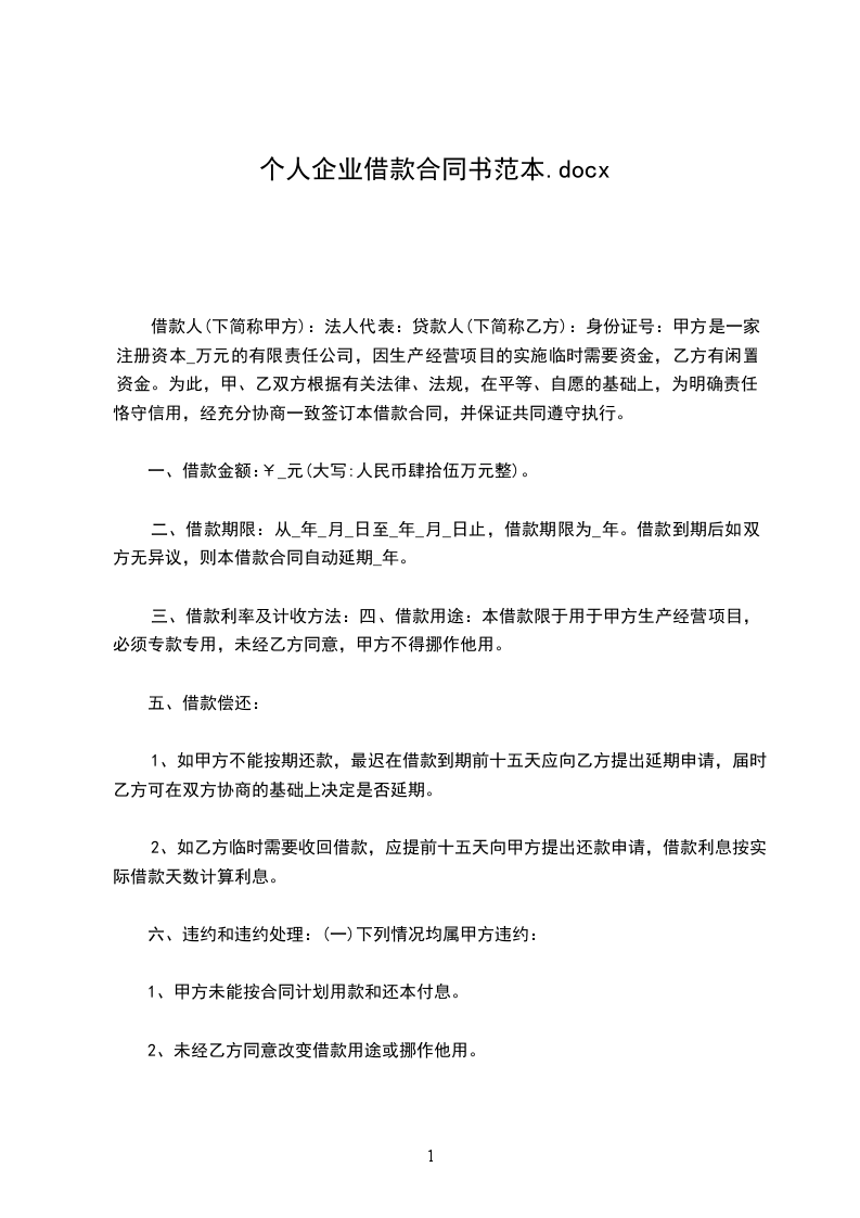 合同生效:本合同经甲、乙双方签字(盖章)后生效。本合同共贰份,双方各执壹份。本合同若有其他未及事宜,双方进一步商定补充条款。借款人(甲方)(盖章)贷款人(乙方)甲方代表签字:乙方签字:签约日期:合同二:借款人:(下简称甲方)法人代表:贷款人:(下简称乙方)身份证号:甲方是一家注册资本万元的有限责任公司,因生产经营项目的实施临时需要资金,乙方有闲置资金。为此,甲、乙双方根据有关法律、法规,在平等、自愿的基础上,为明确责任、恪守信用,经充分协商一致签订本借款合同,并保证共同遵守执行。
