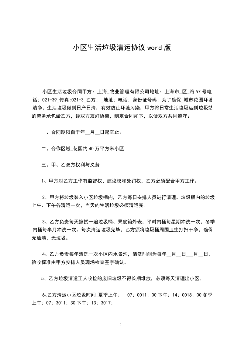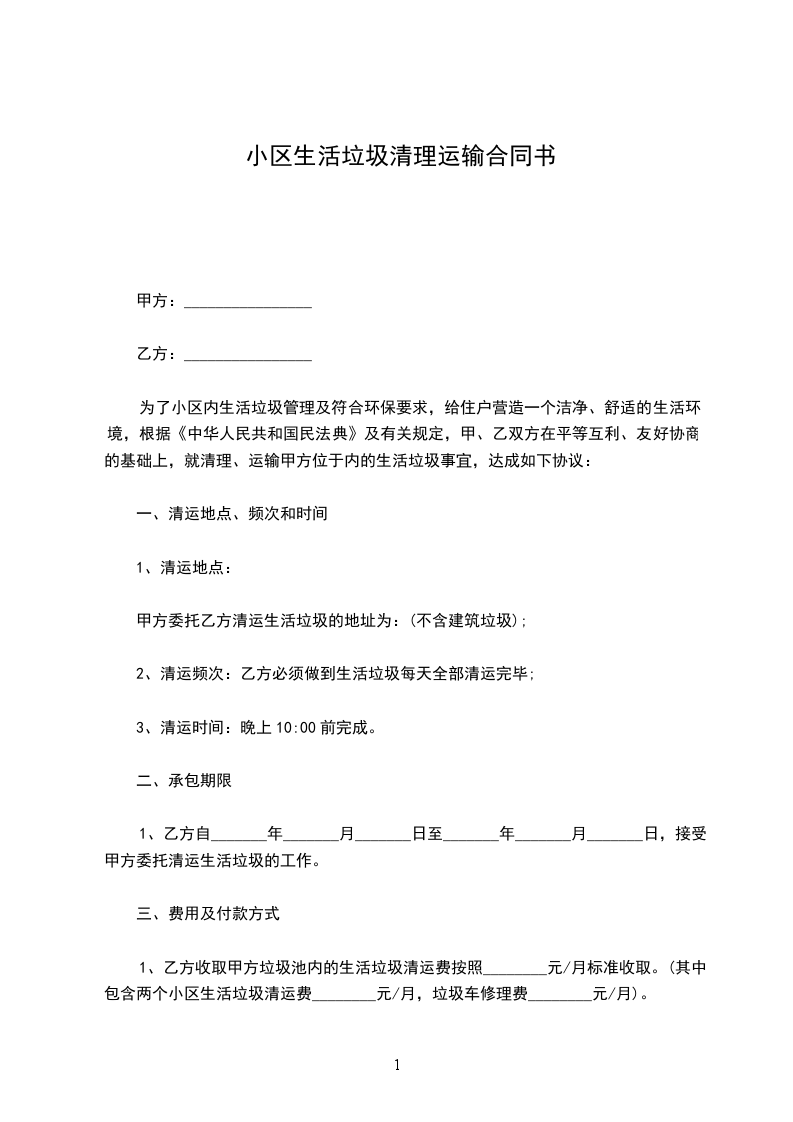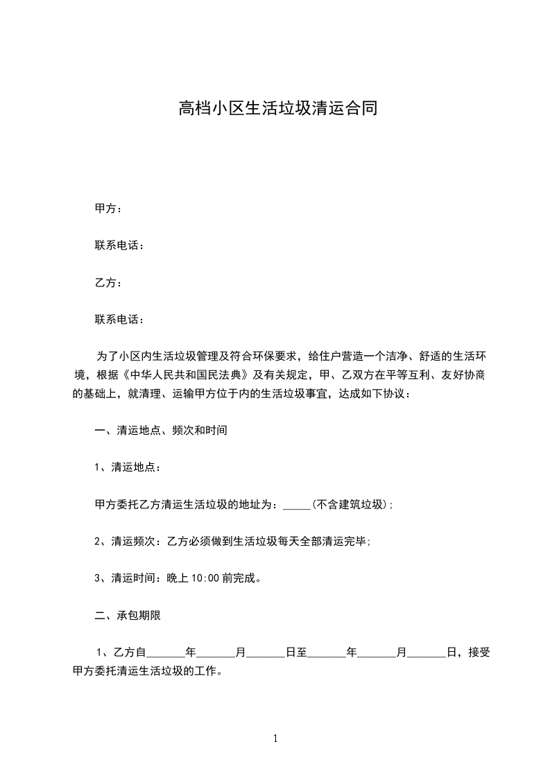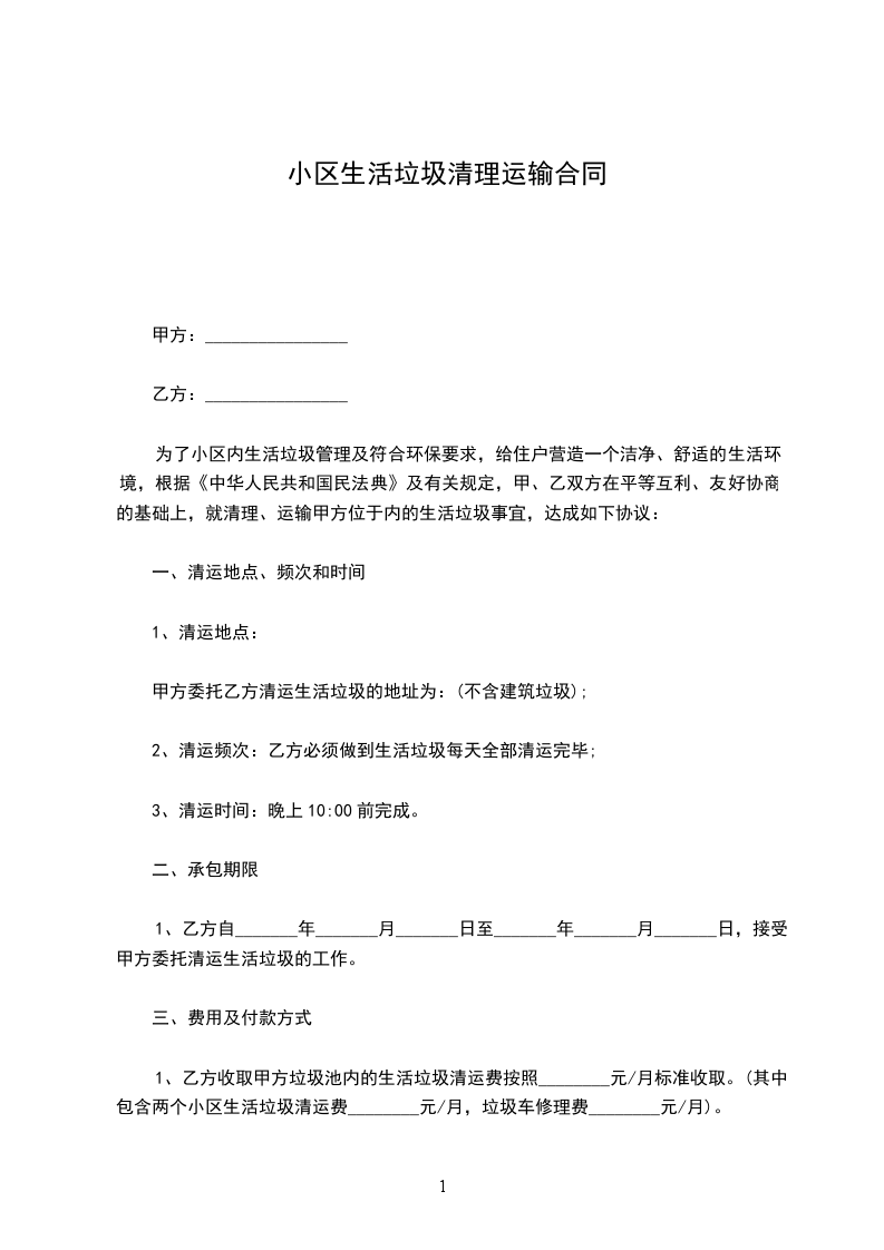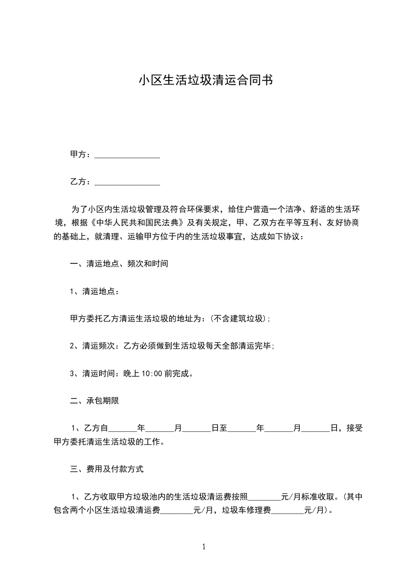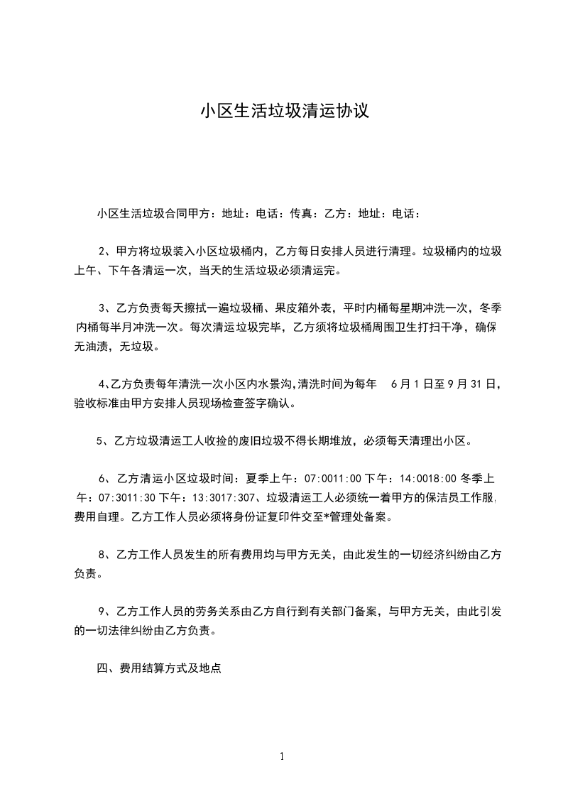 小区生活垃圾合同甲方:地址:电话:传真:乙方:地址:电话: