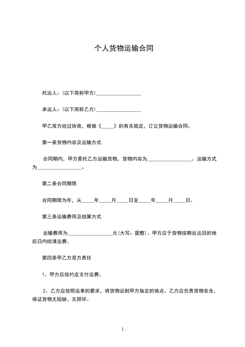 运输费用为__________________元(大写:圆整)。甲方应于货物按期运达目的地后日内结清运费。